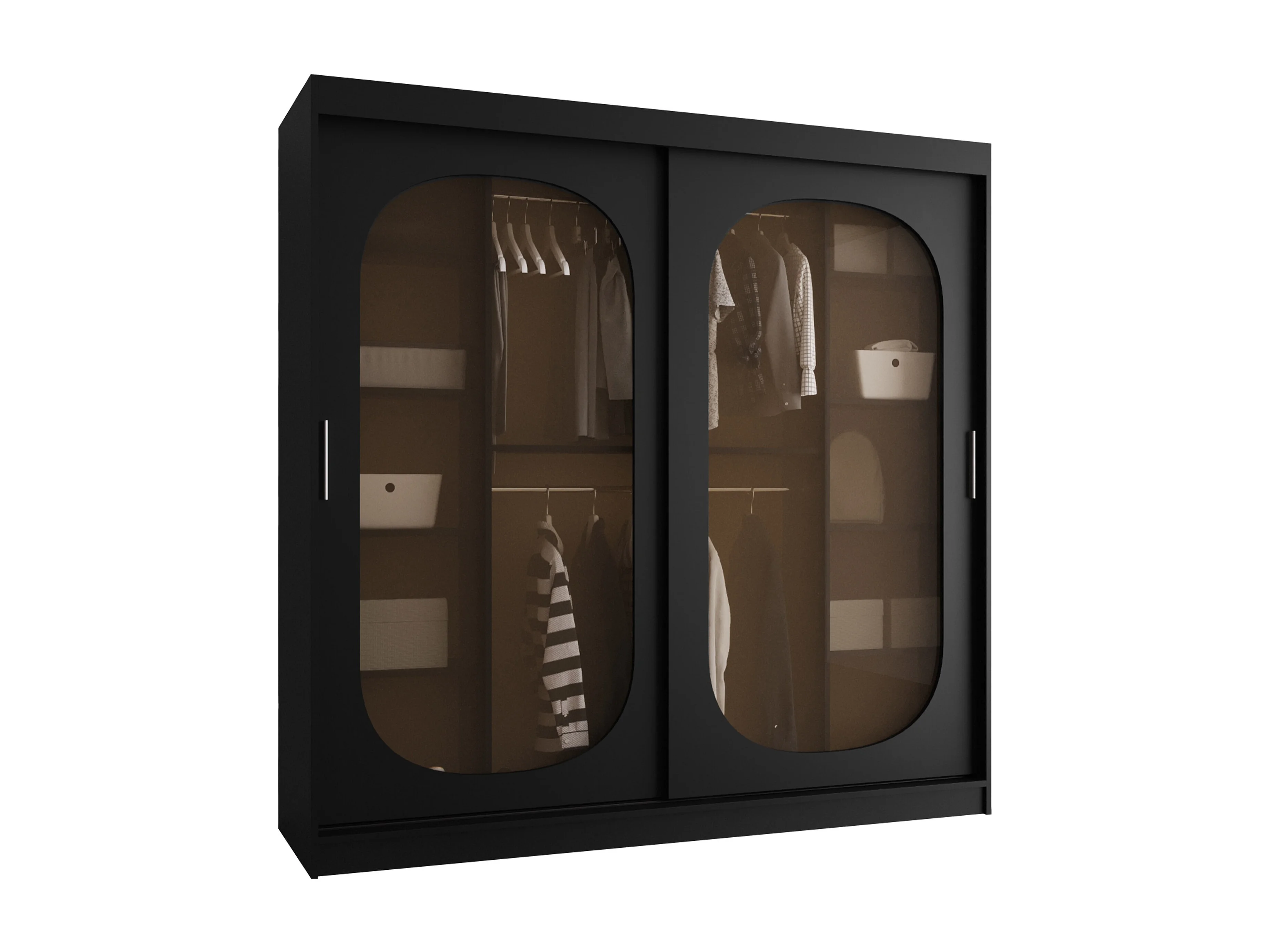 Armoire Hartford 521, Noir, 200x200x62cm, Portes d'armoire: Coulissantes