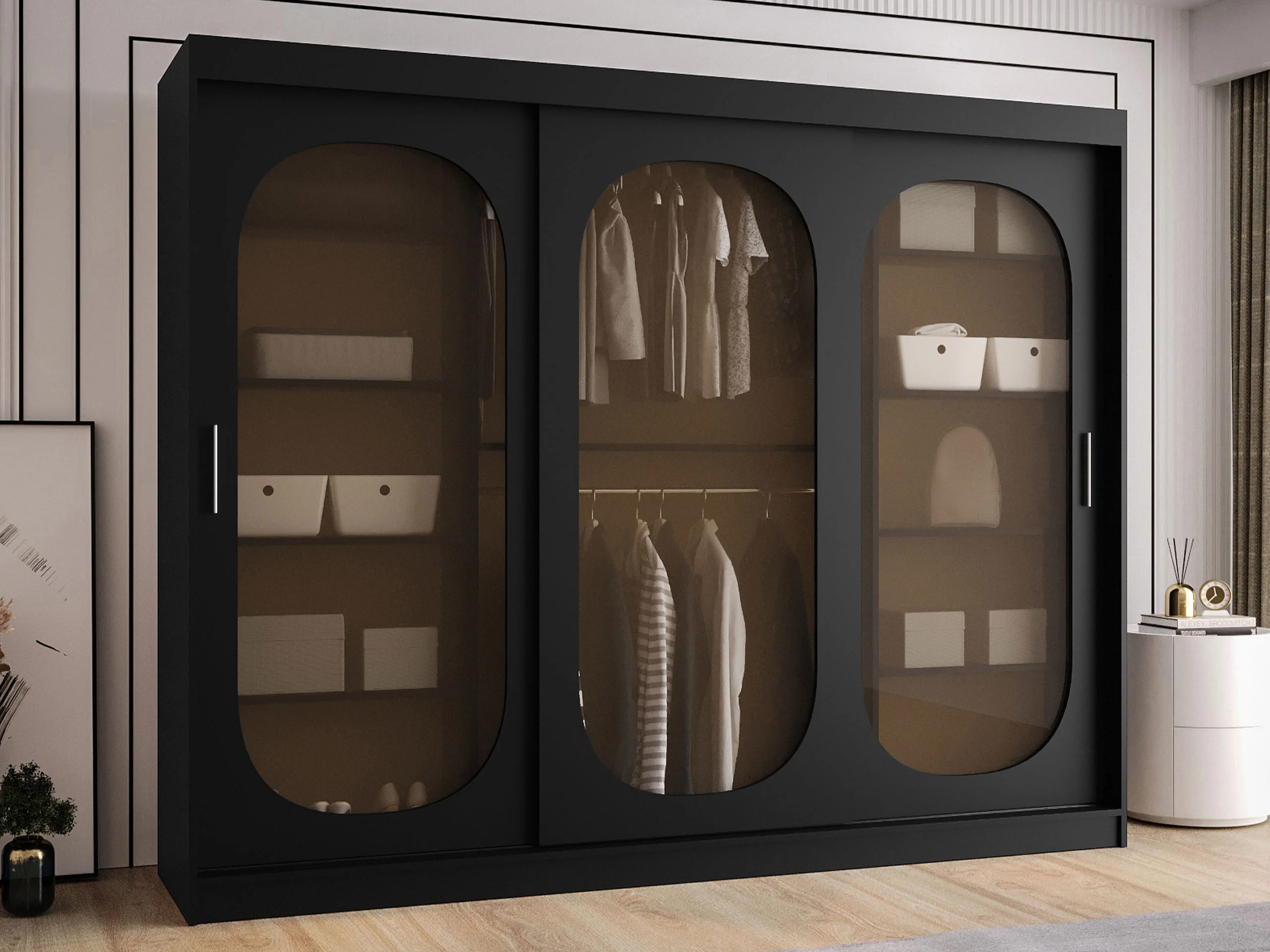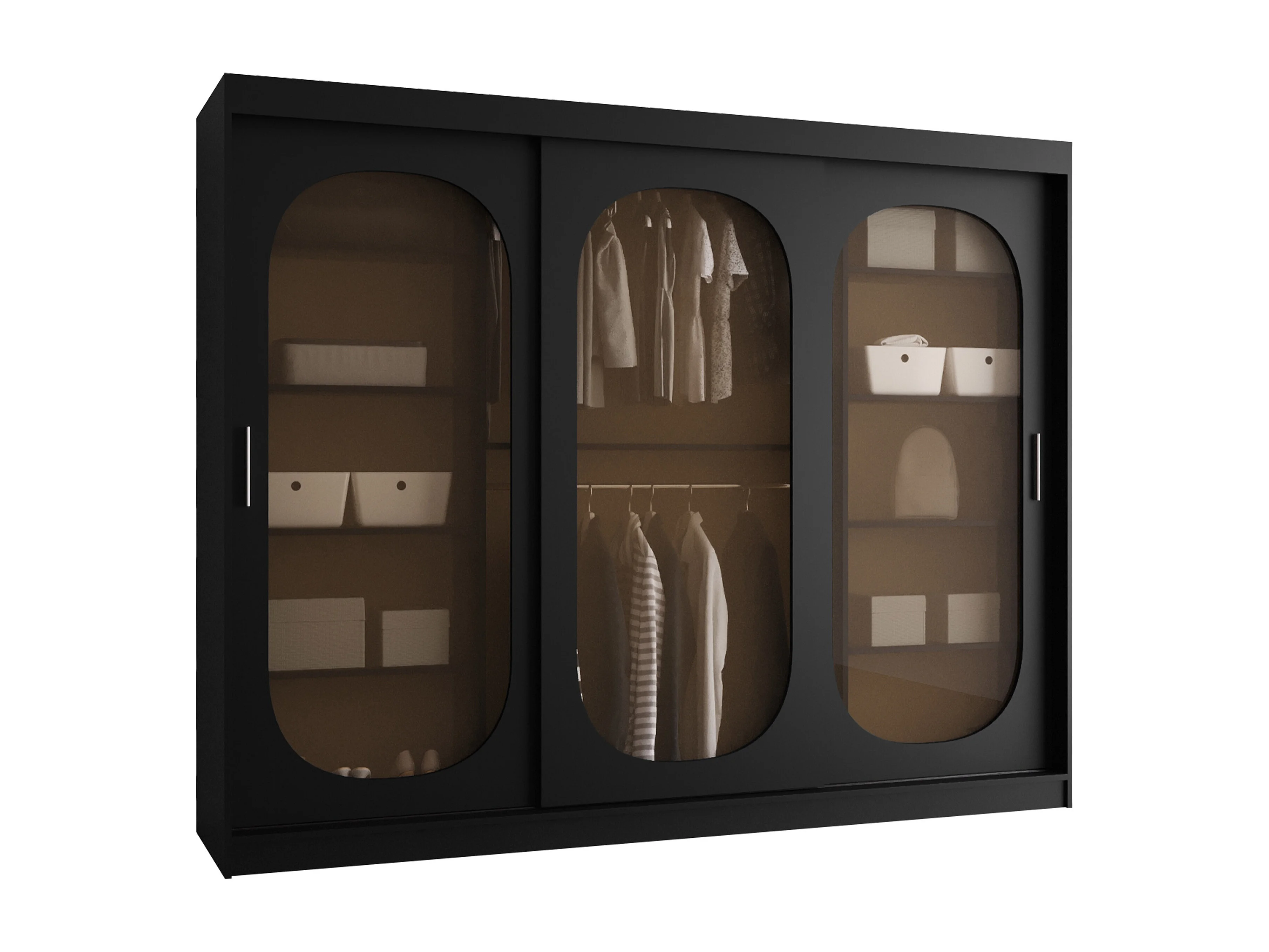 Armoire Hartford 522, Noir, 200x250x62cm, Portes d'armoire: Coulissantes