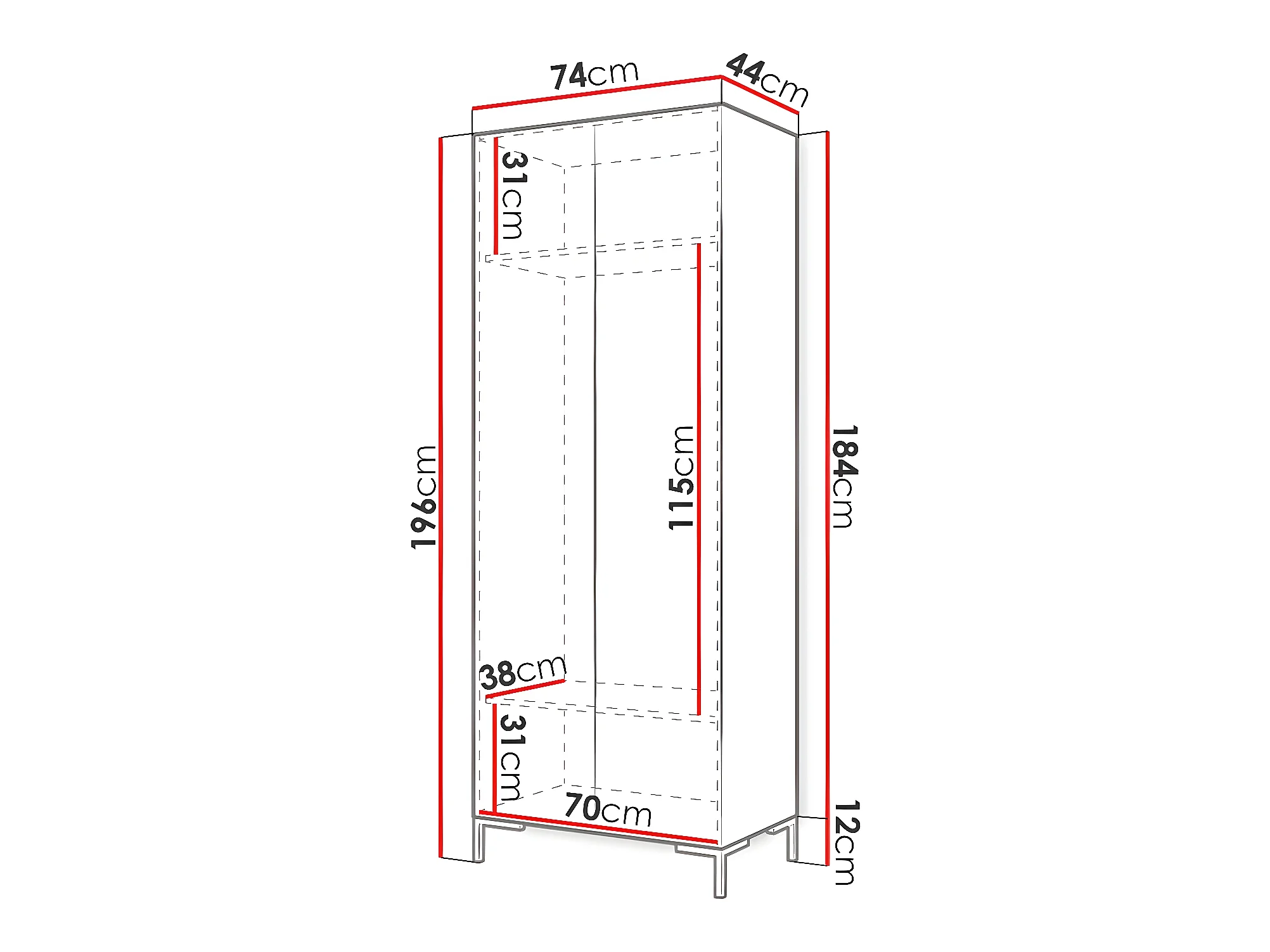 Armoire Tivsoa 109, Doré|Noir, 196x74x44cm, Portes d'armoire: Avec des charnières