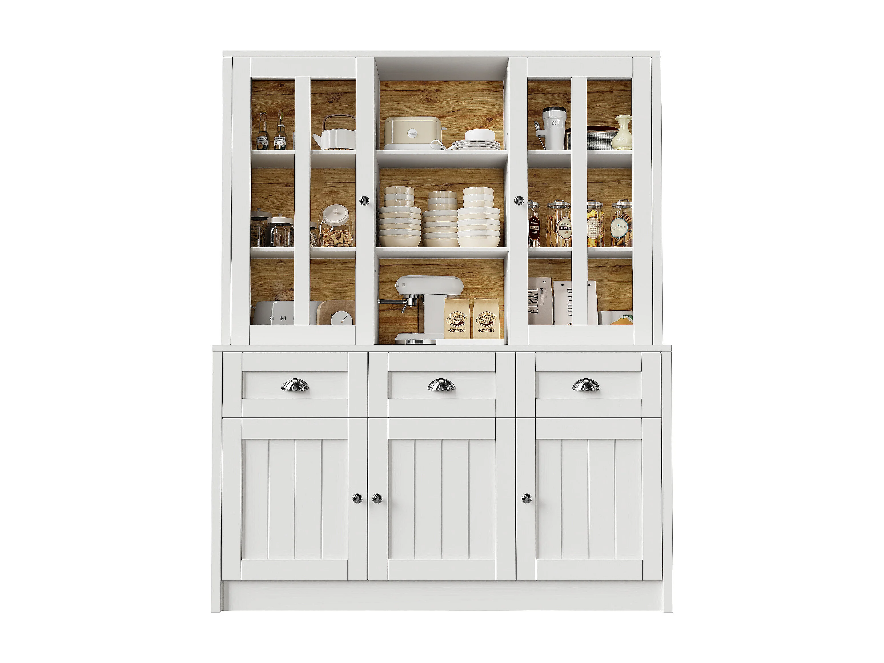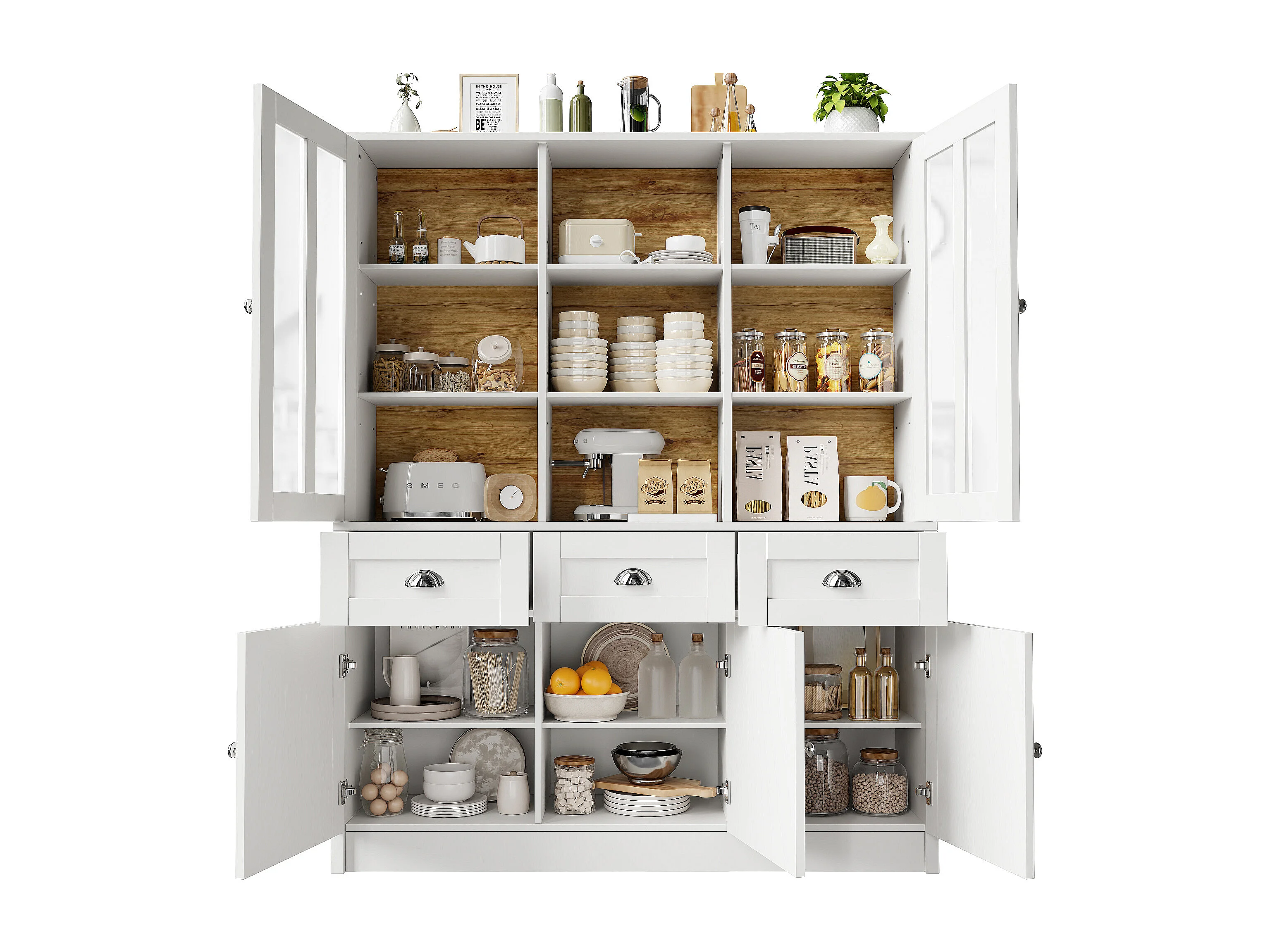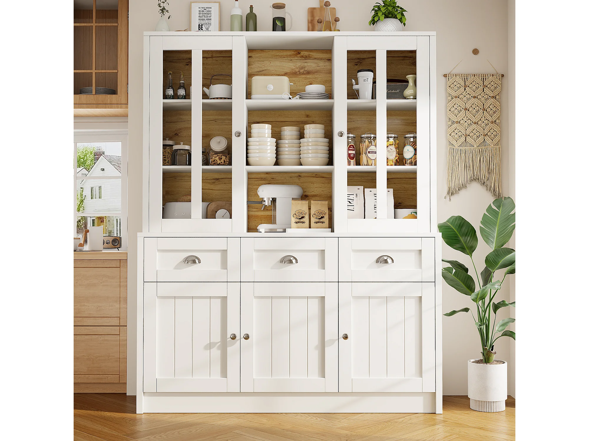 Armoire haute 140×38,5×175cm, Vitrine et Buffet, Étagères avec tiroirs, Style minimaliste, Cuisine/Salon, Blanc, rangement spacieux