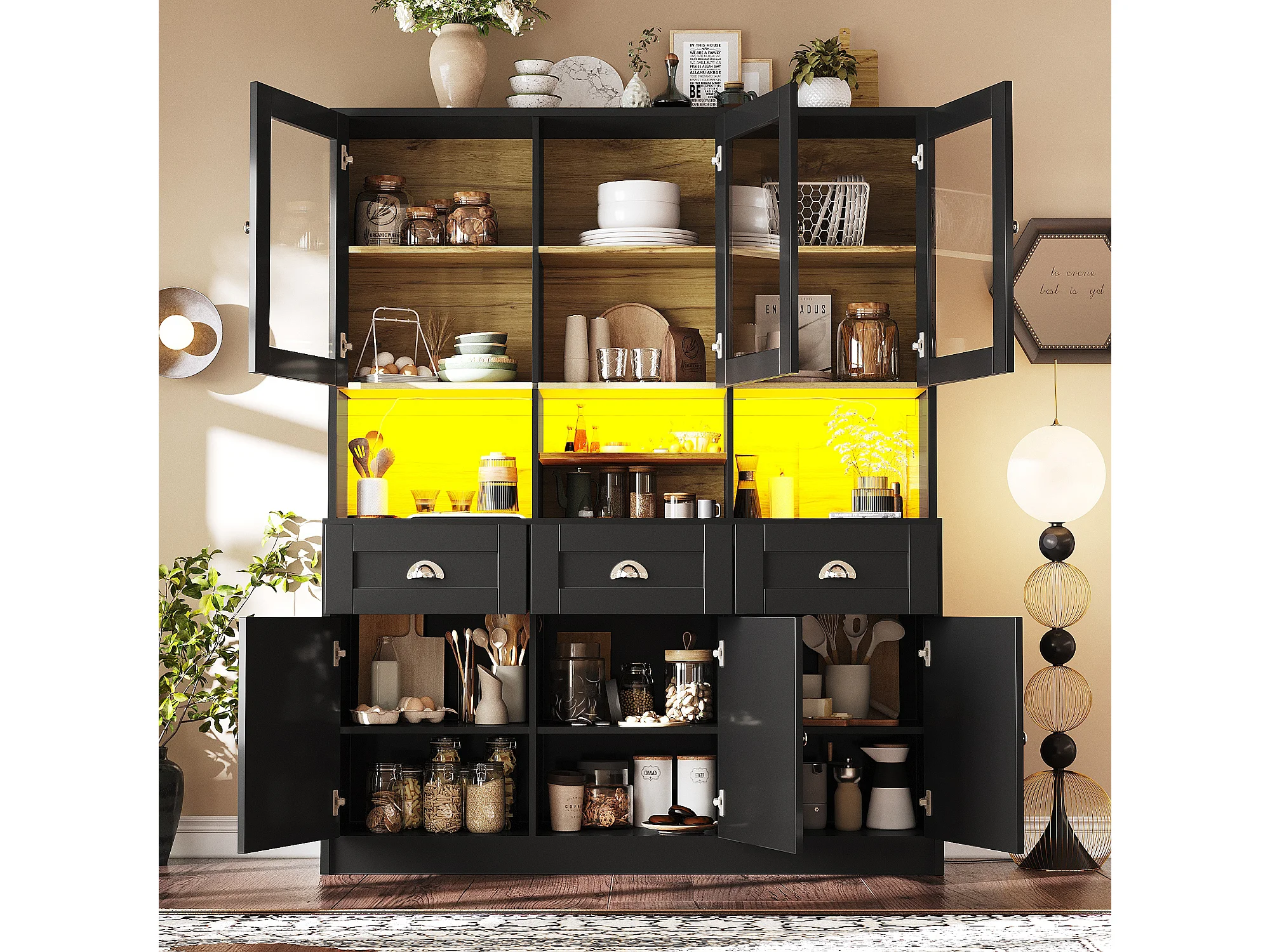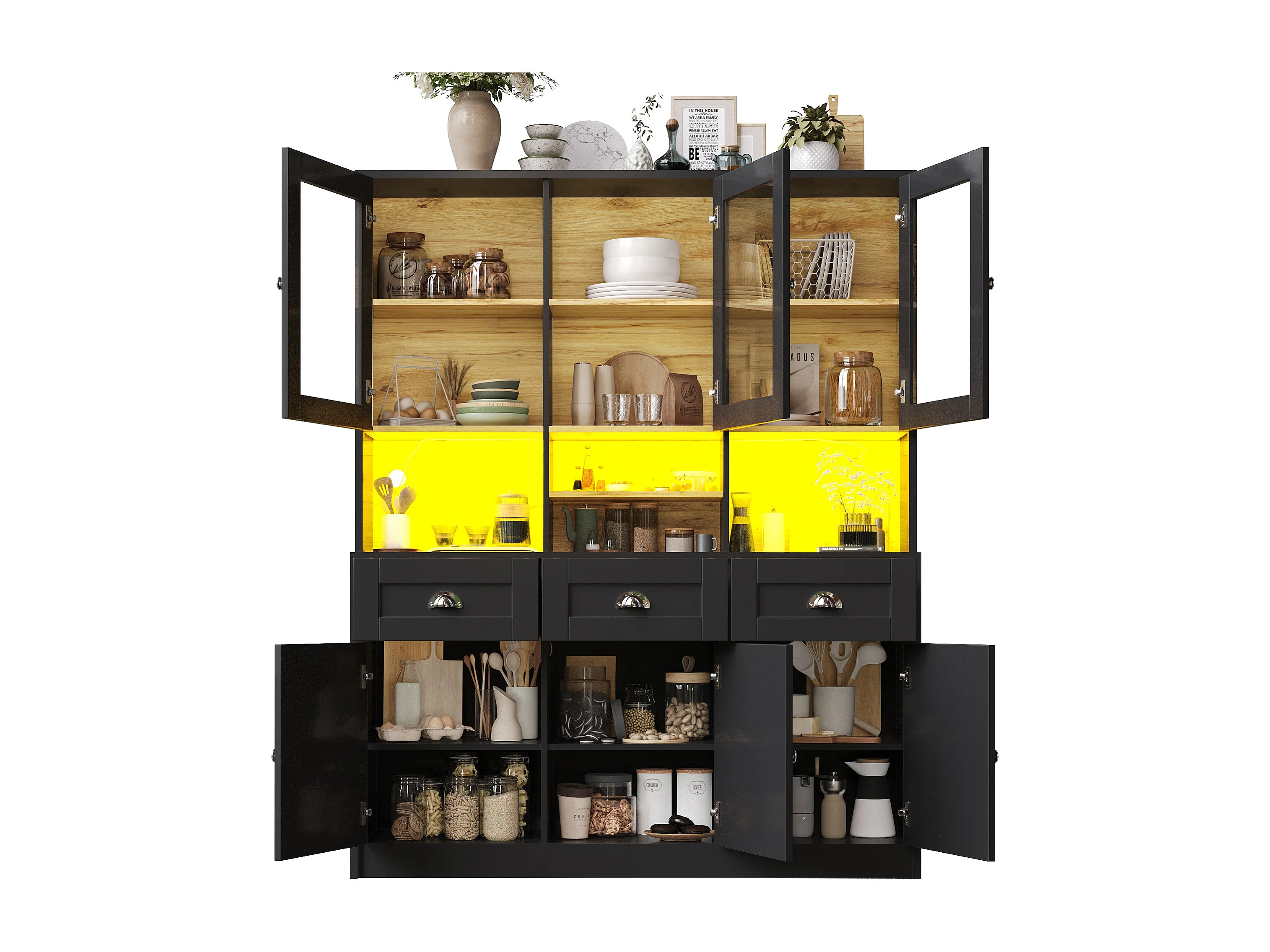 Armoire haute 140×40×175cm, Buffet et Vitrine, Étagères réglables, Sideboard LED, Lumière variable, Blanc/Noir, rangement multifonction