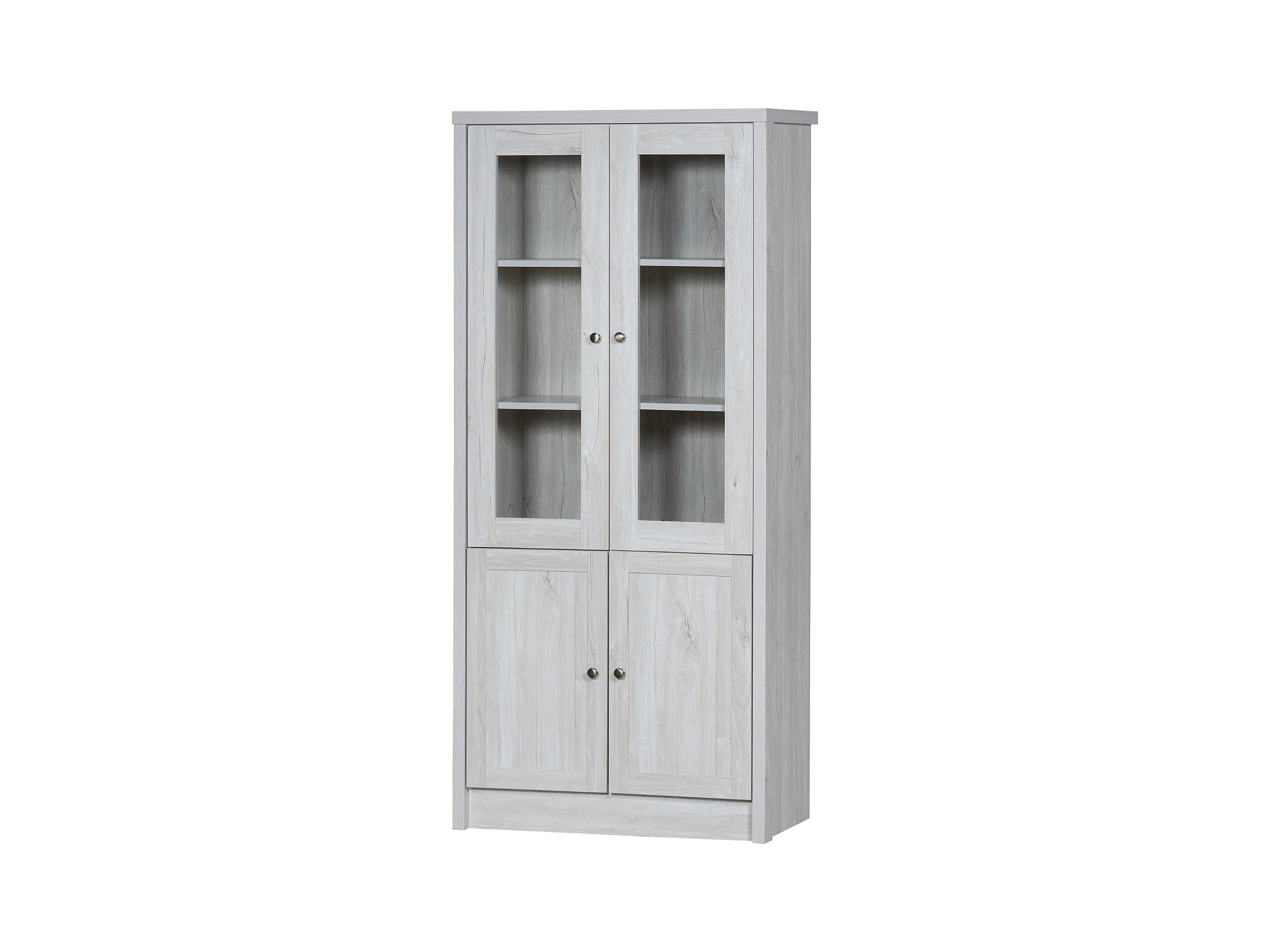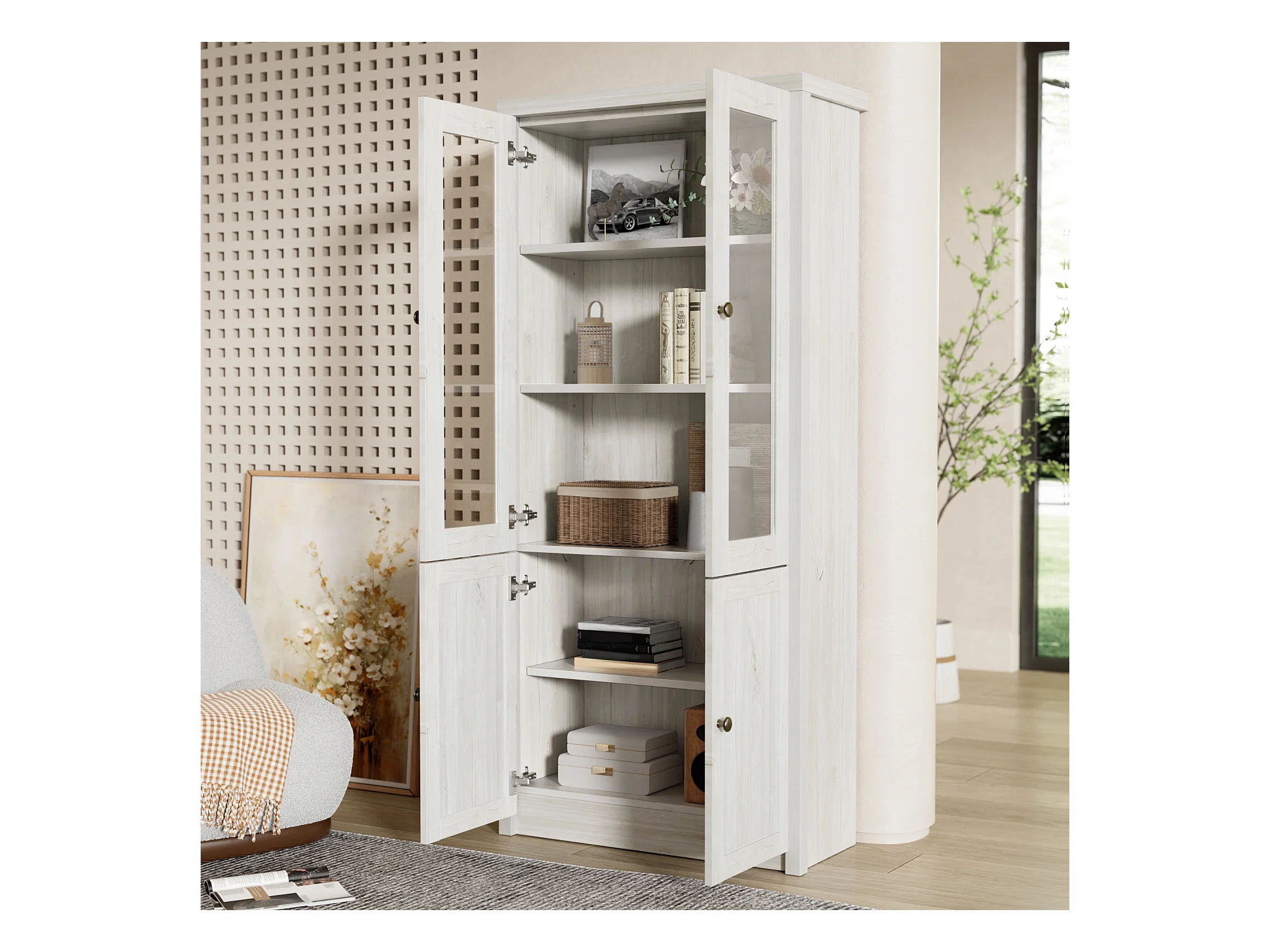 Armoire haute 80x34x171cm avec 2 portes, corps en placage woodgrain blanc avec poignées en acier