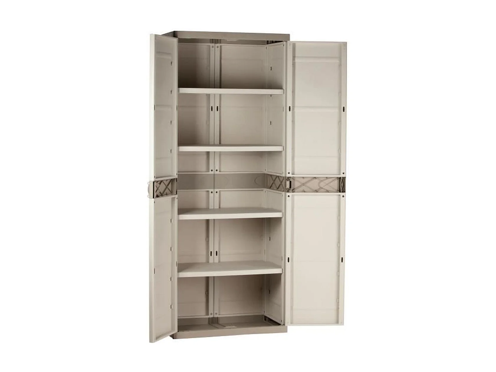 Armoire meuble de rangement 4 étagères intérieur/extérieur coloris beige - L. 90 x P. 45 x H. 184 cm