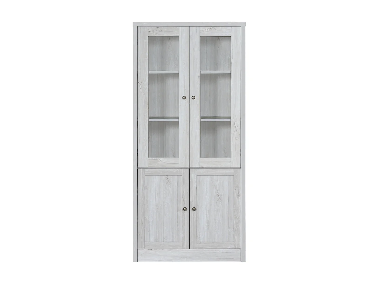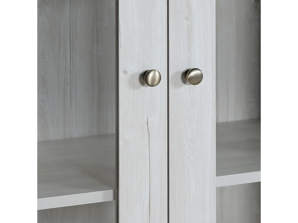 Armoire haute moderne aspect bois portes en verre 2 portes bois poignées cuivre espace de rangement élégant bois