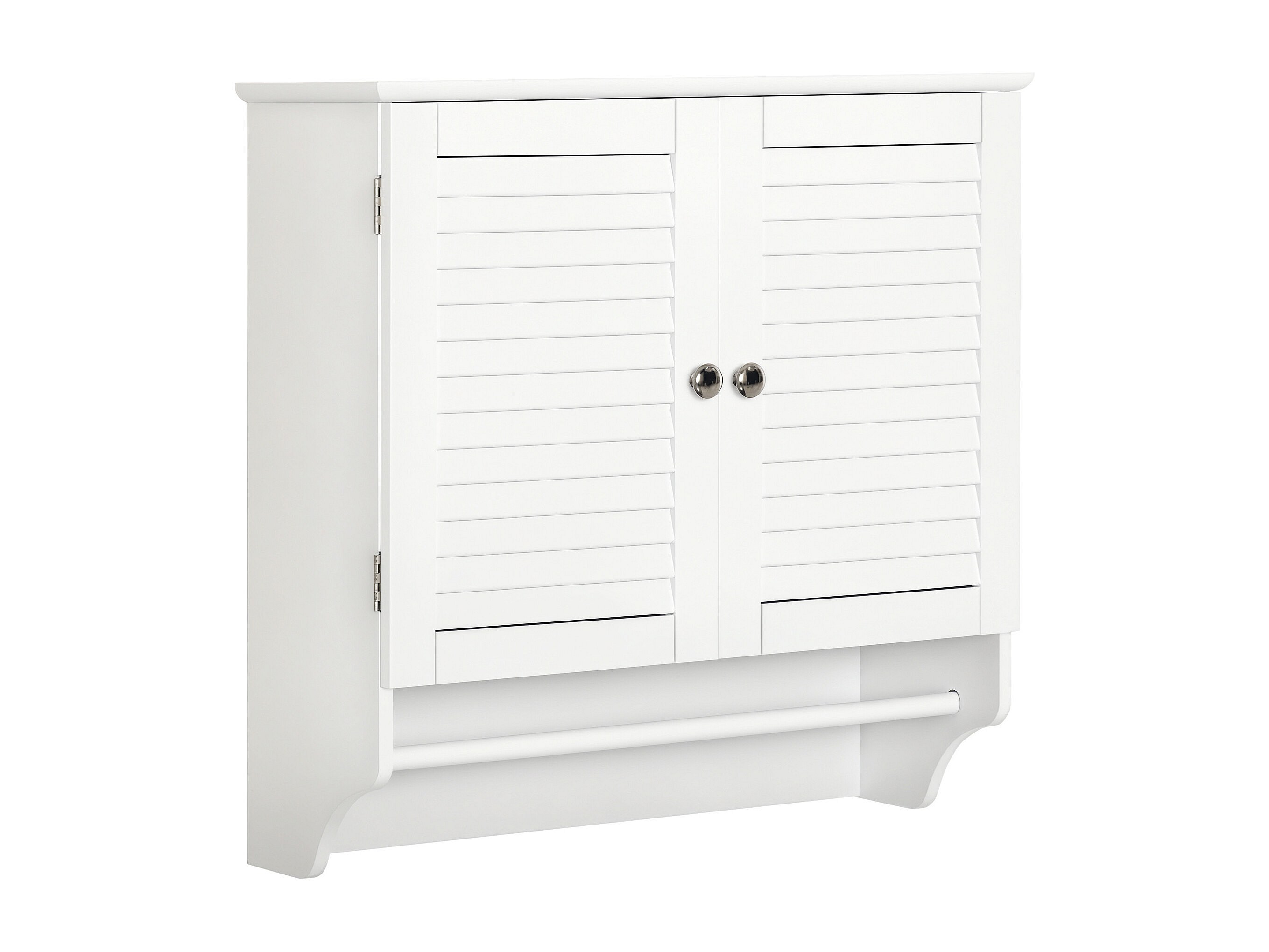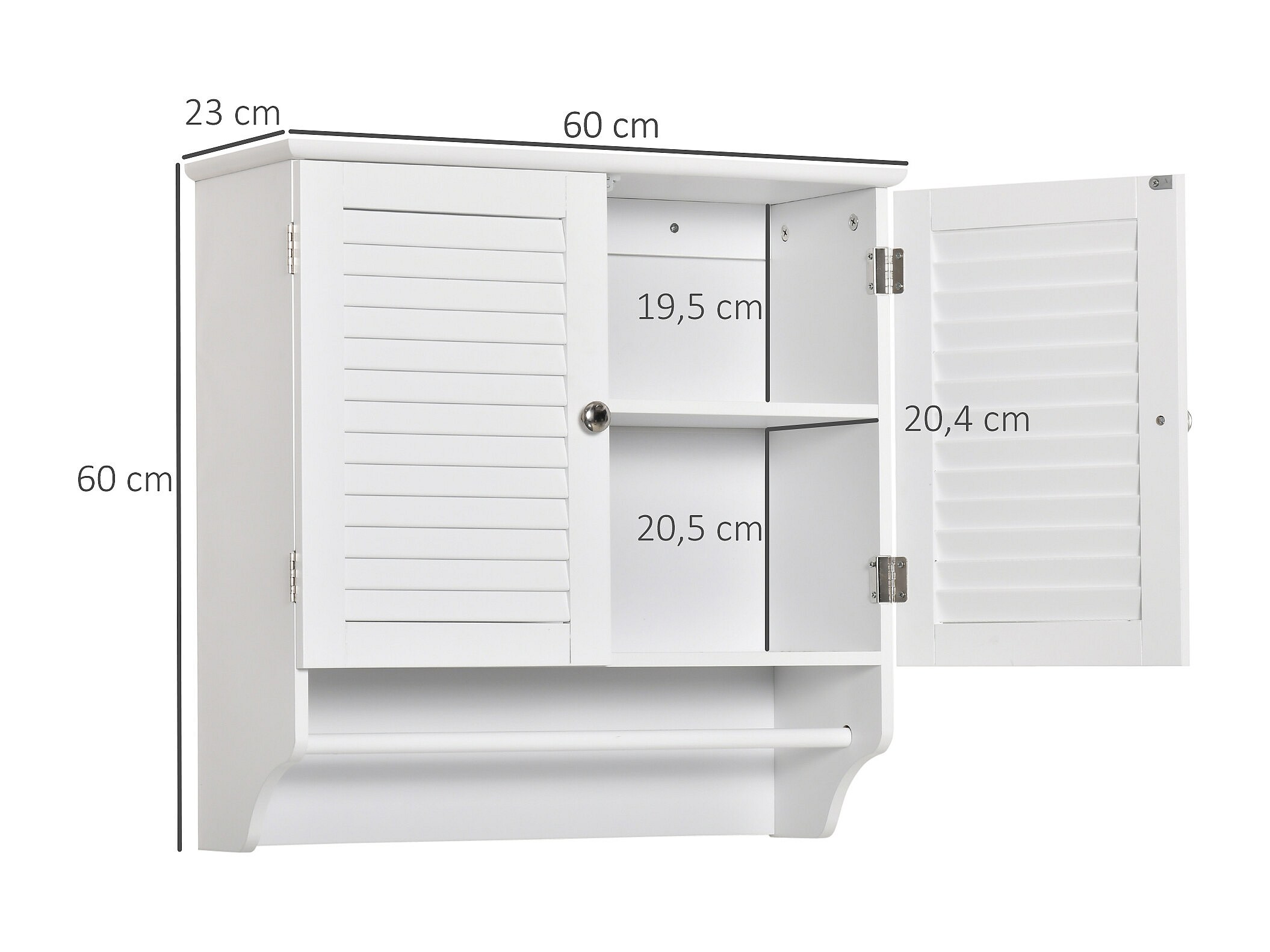 Armoire haute murale salle de bain ou WC - placard 2 portes persiennes avec étagère - porte-serviette - MDF blanc