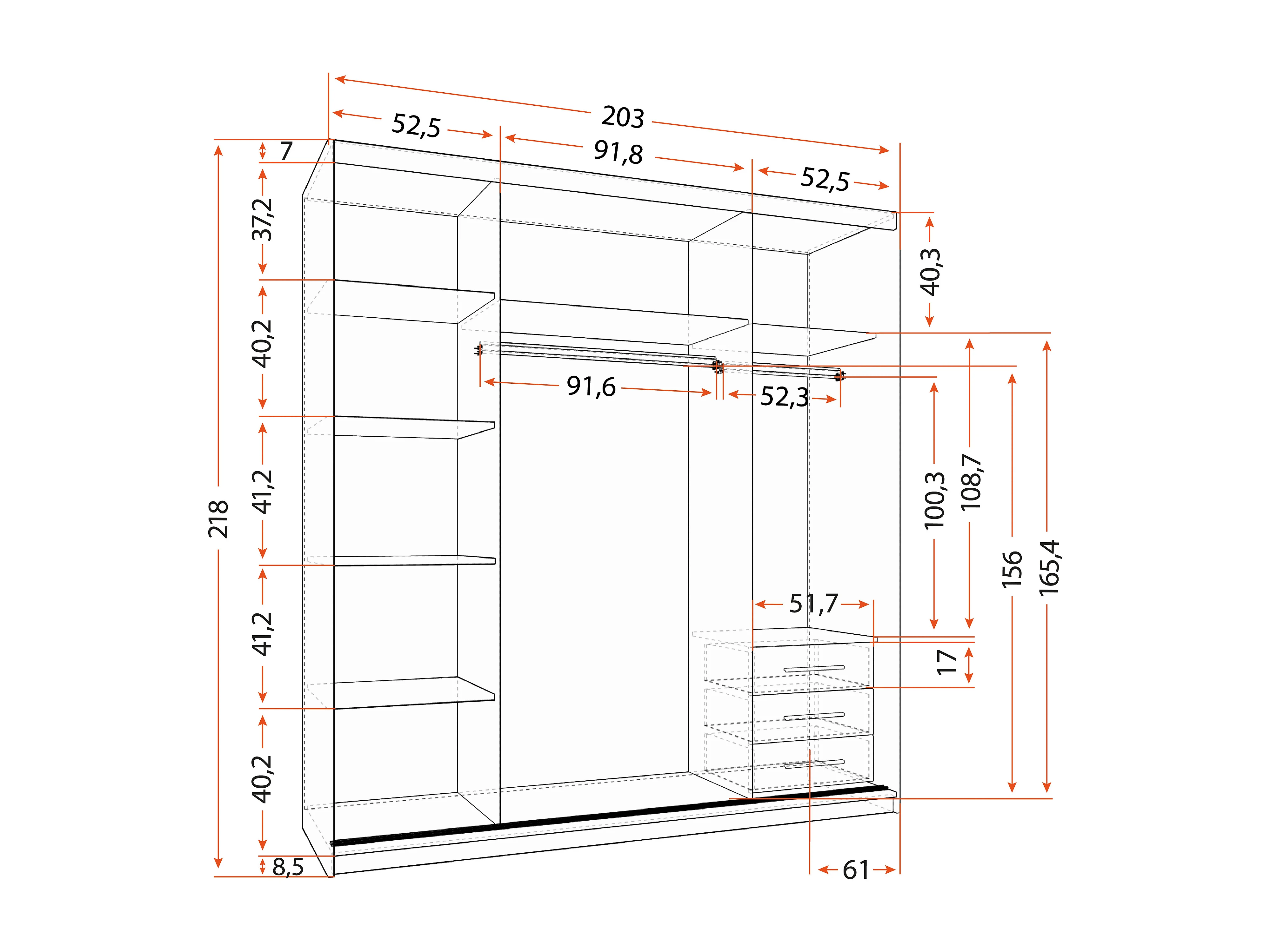 Armoire Helis 203 semi-brillant avec miroir - Blanc