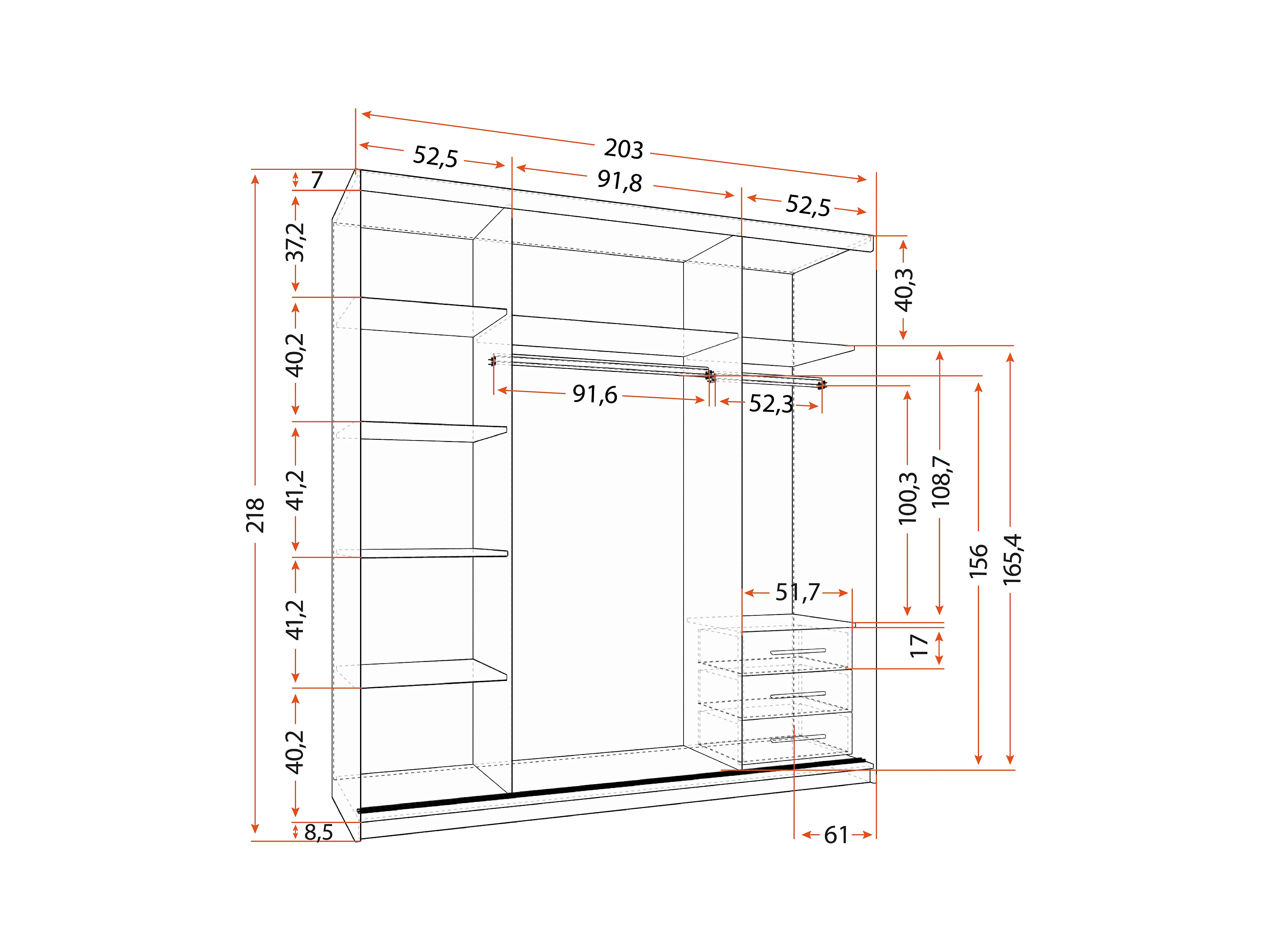 Armoire Helis 203 semi-brillant avec miroir - Blanc - Chêne