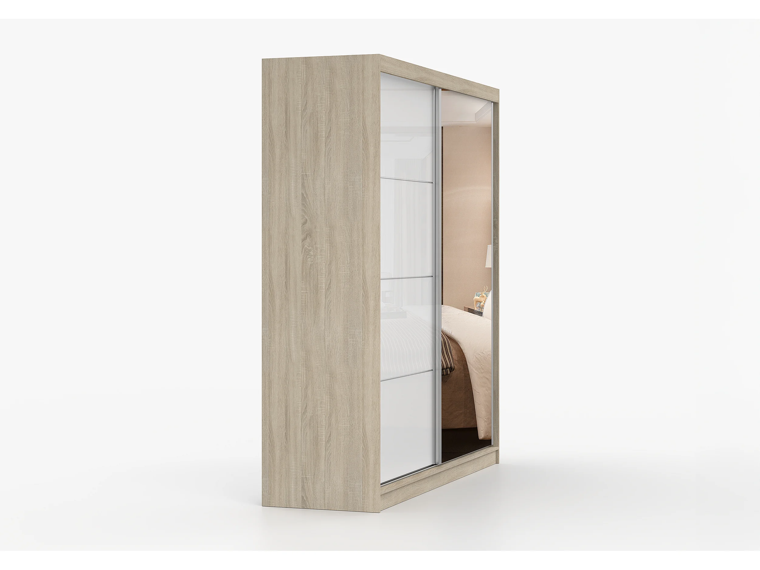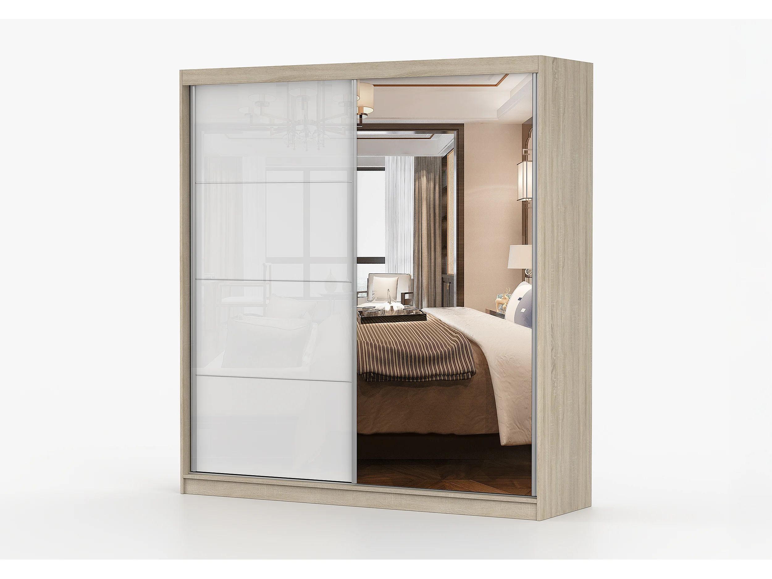 Armoire Helis 203 semi-brillant avec miroir - Chêne - Blanc