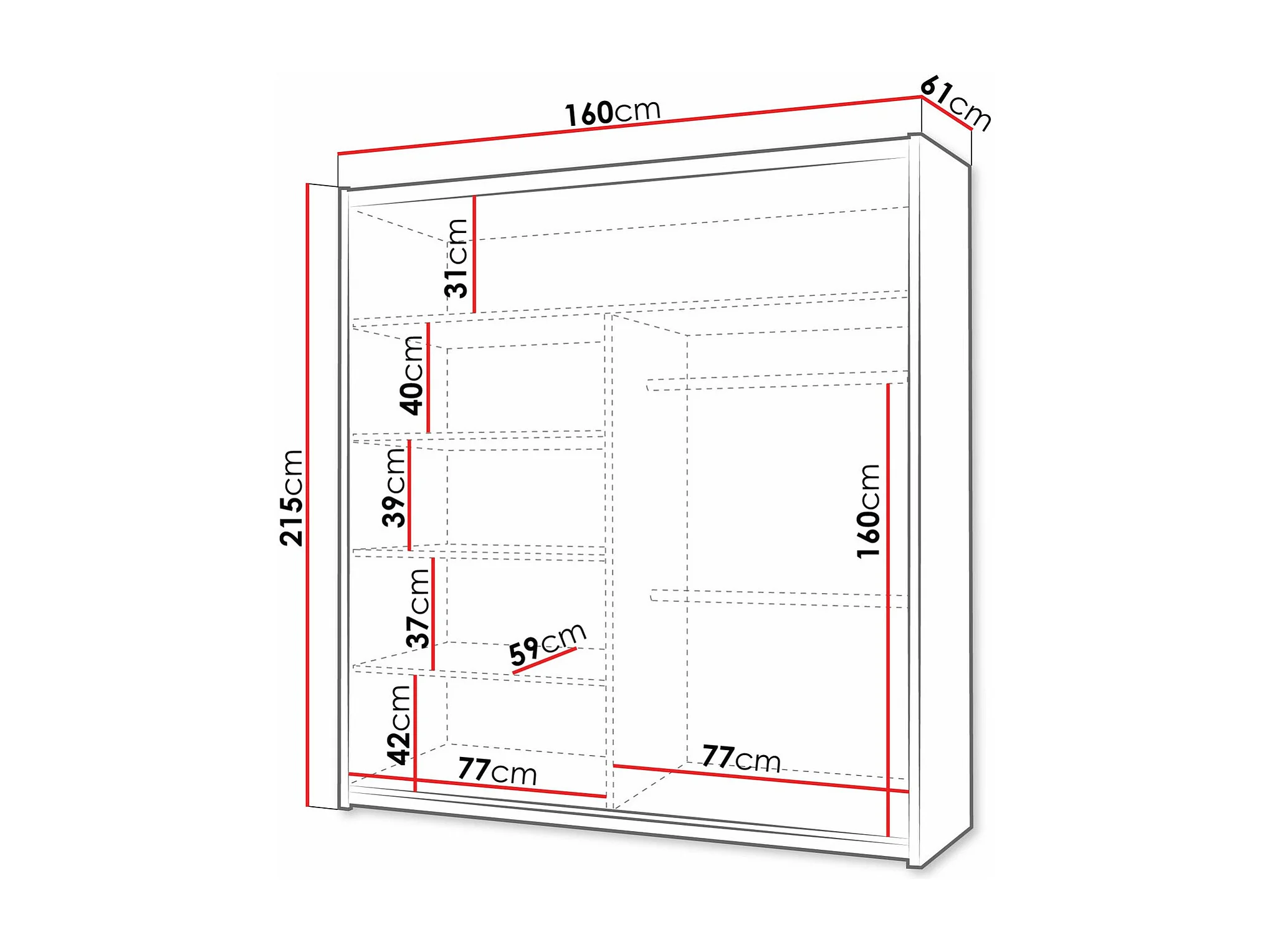 Armoire Honolulu 235, Blanc, 215x160x61cm, Portes d'armoire: Coulissantes