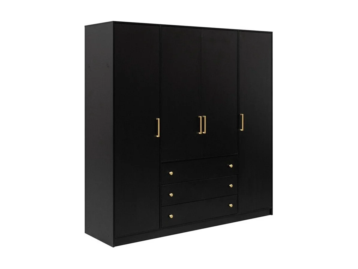 Armoire Honolulu 252, Noir|Doré, 200x196x58cm, Portes d'armoire: Avec des charnières