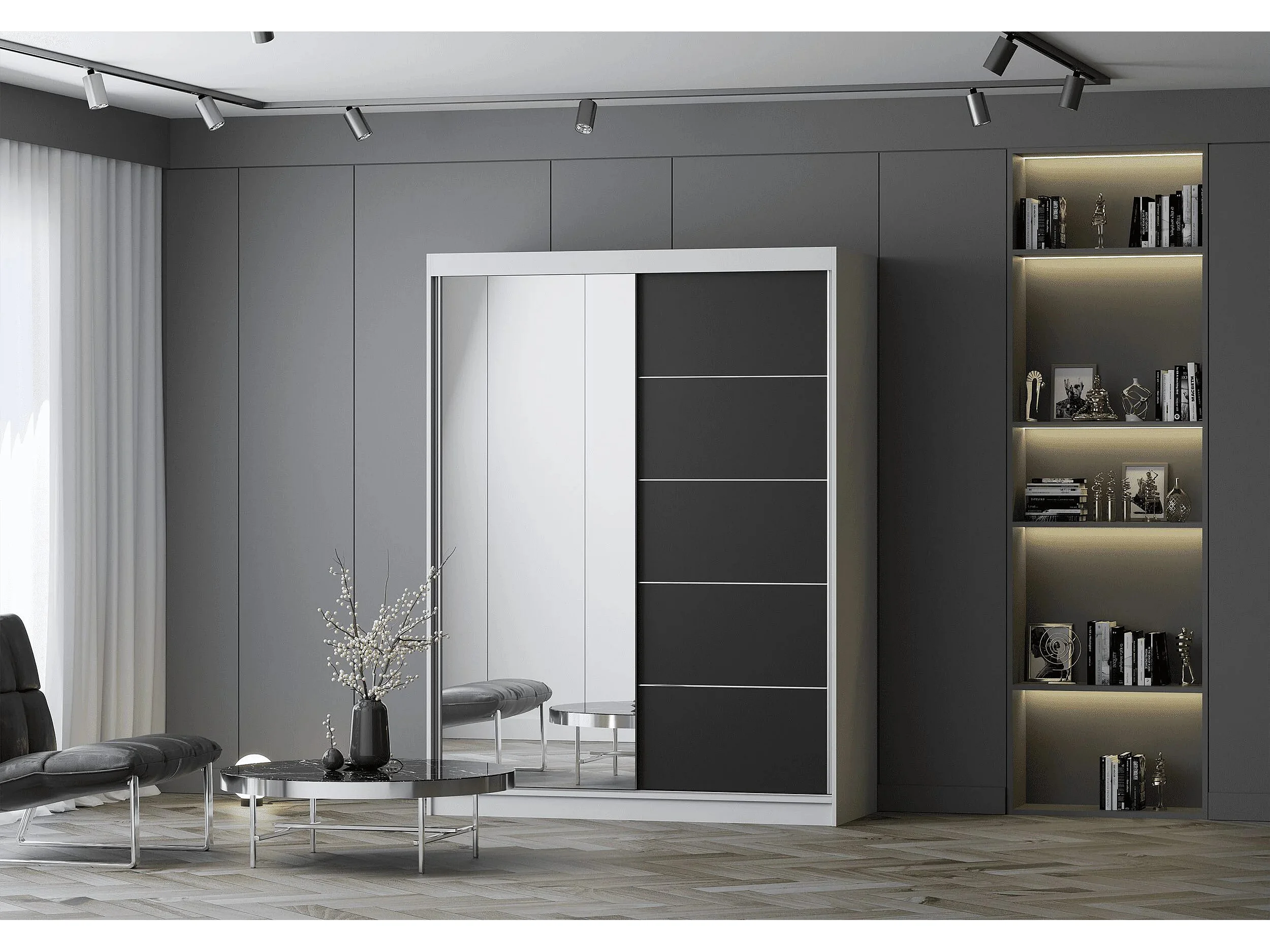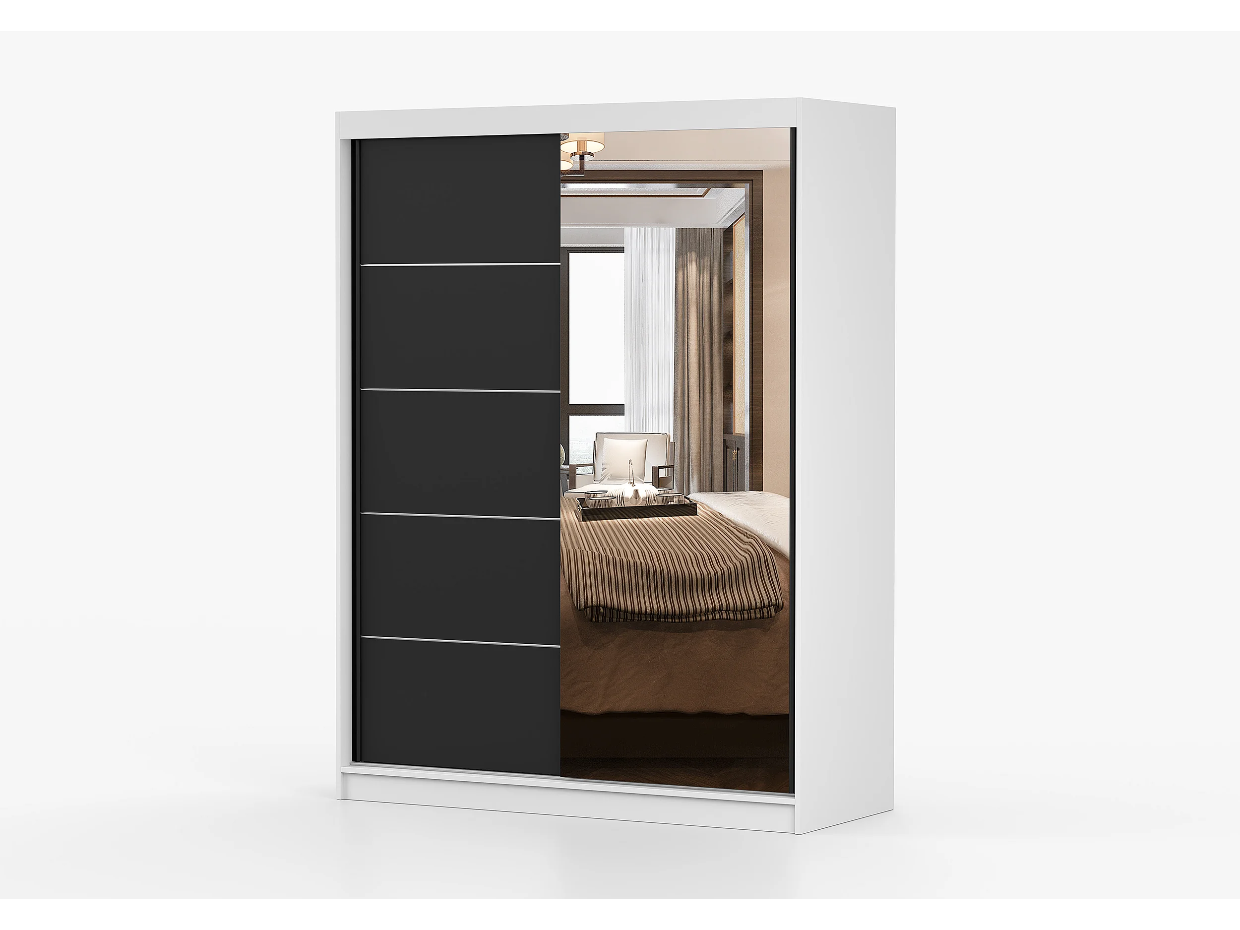 Armoire Irinaé 150 cm avec miroir - Blanc - Noir