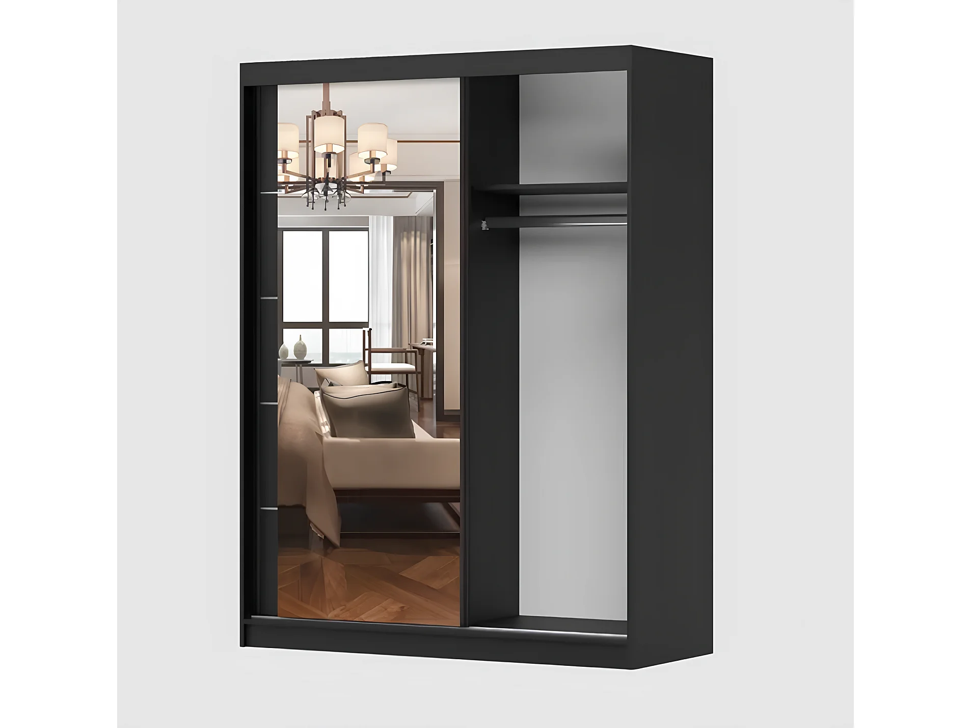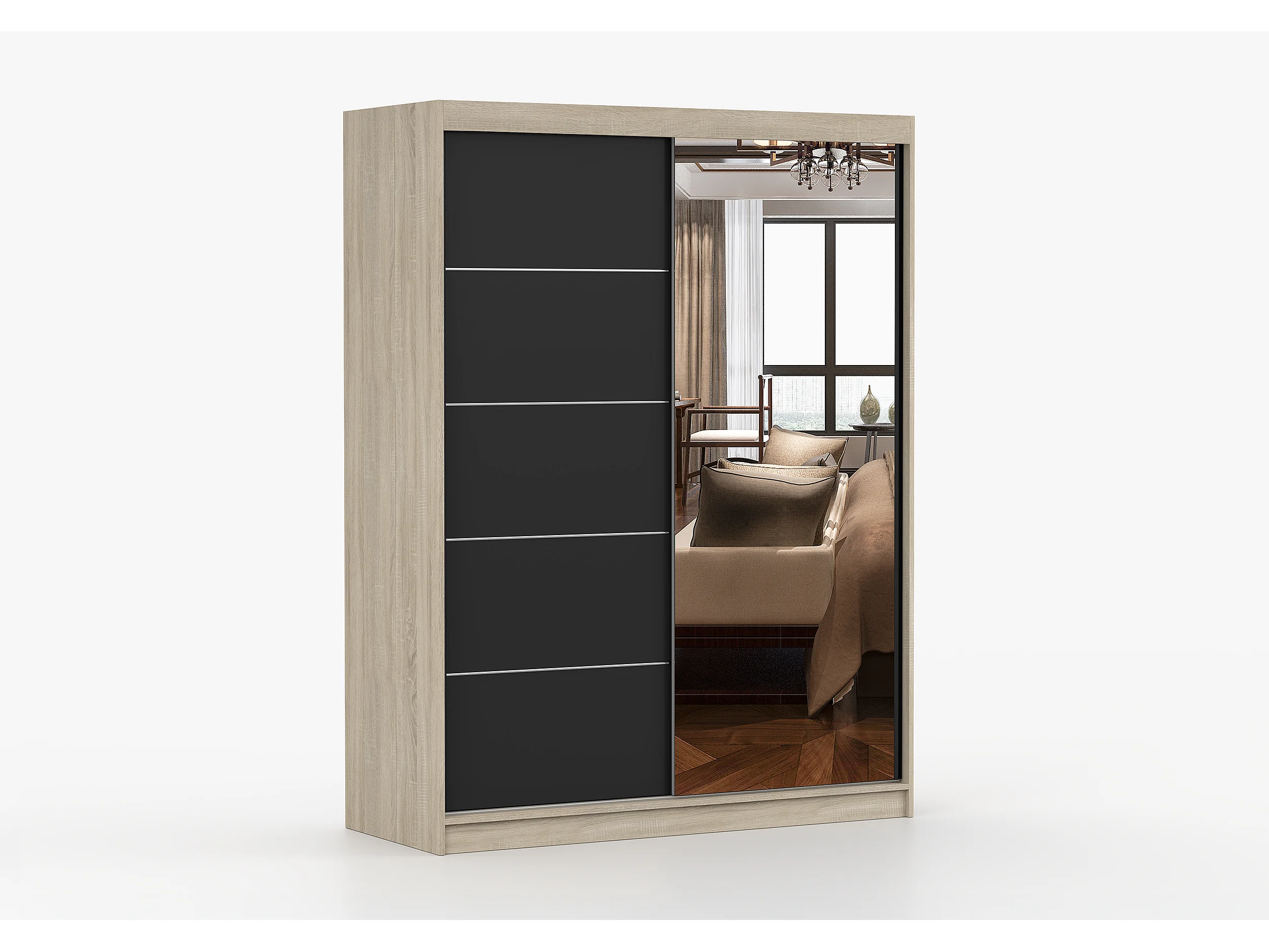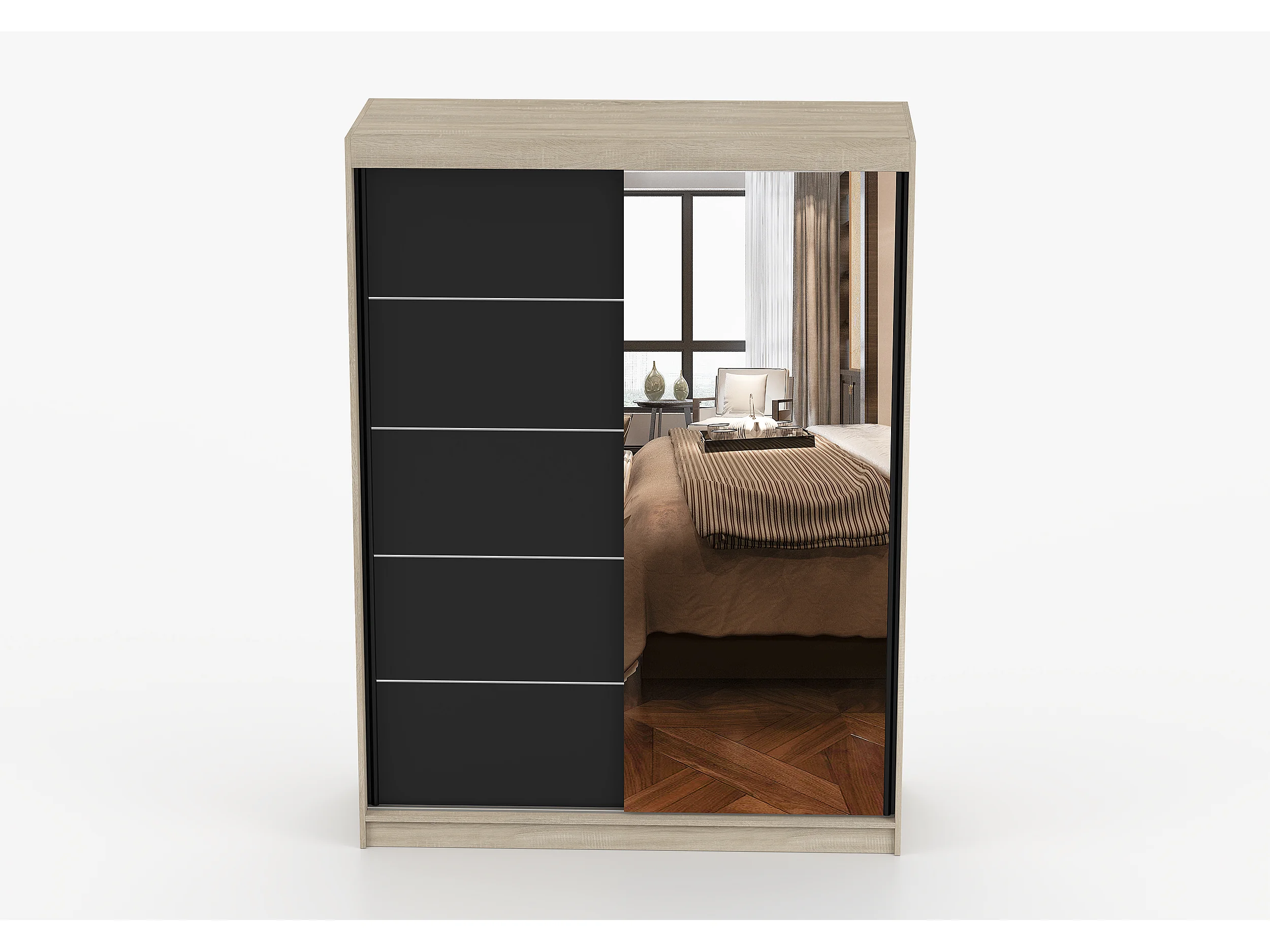 Armoire Irinaé 150 cm avec miroir - Chêne - Noir