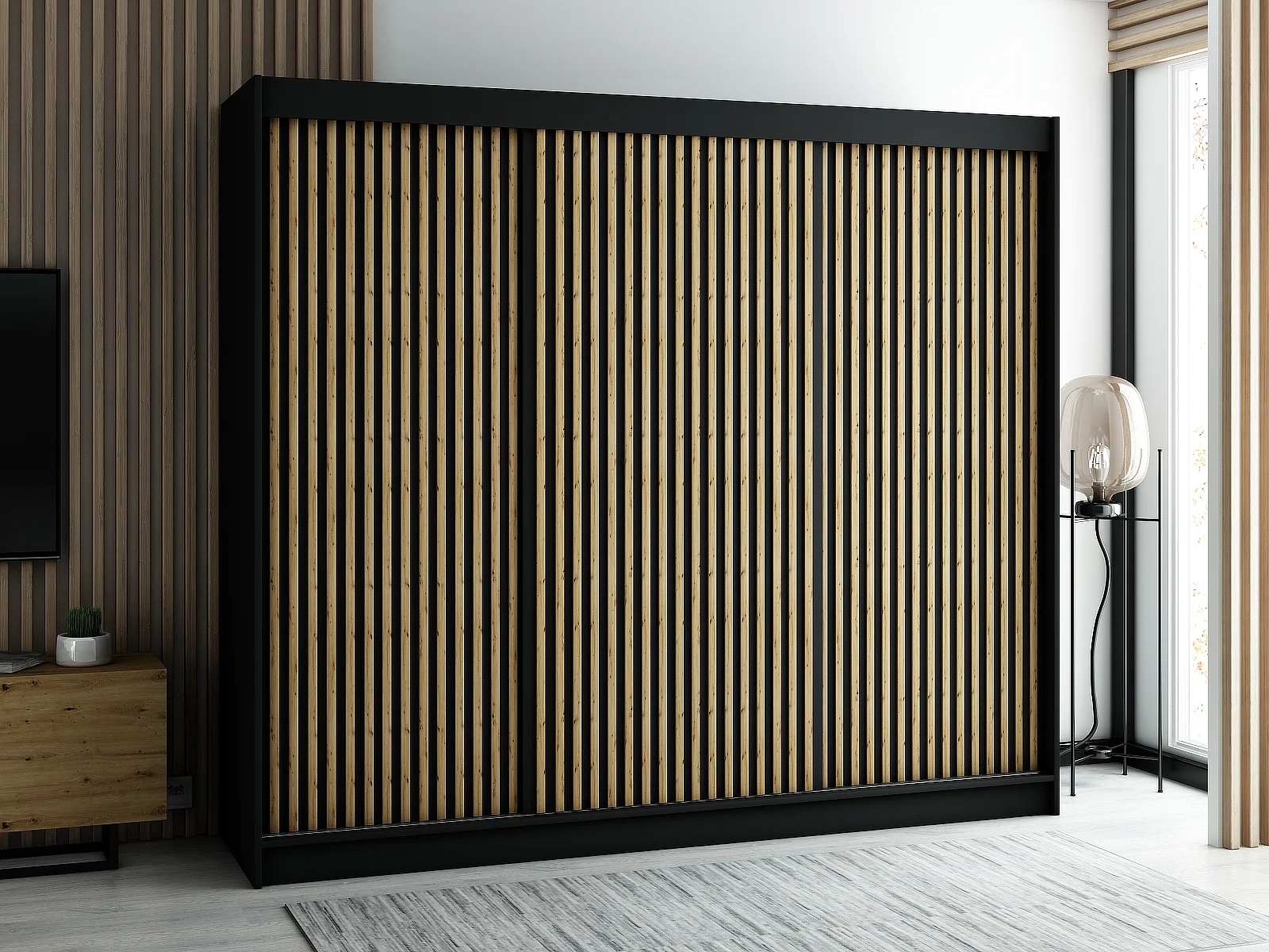 ARMOIRE LAMELO 1 À PORTES COULISSANTES 200/250/62 3 Portes (Noir/Noir/Artisan)