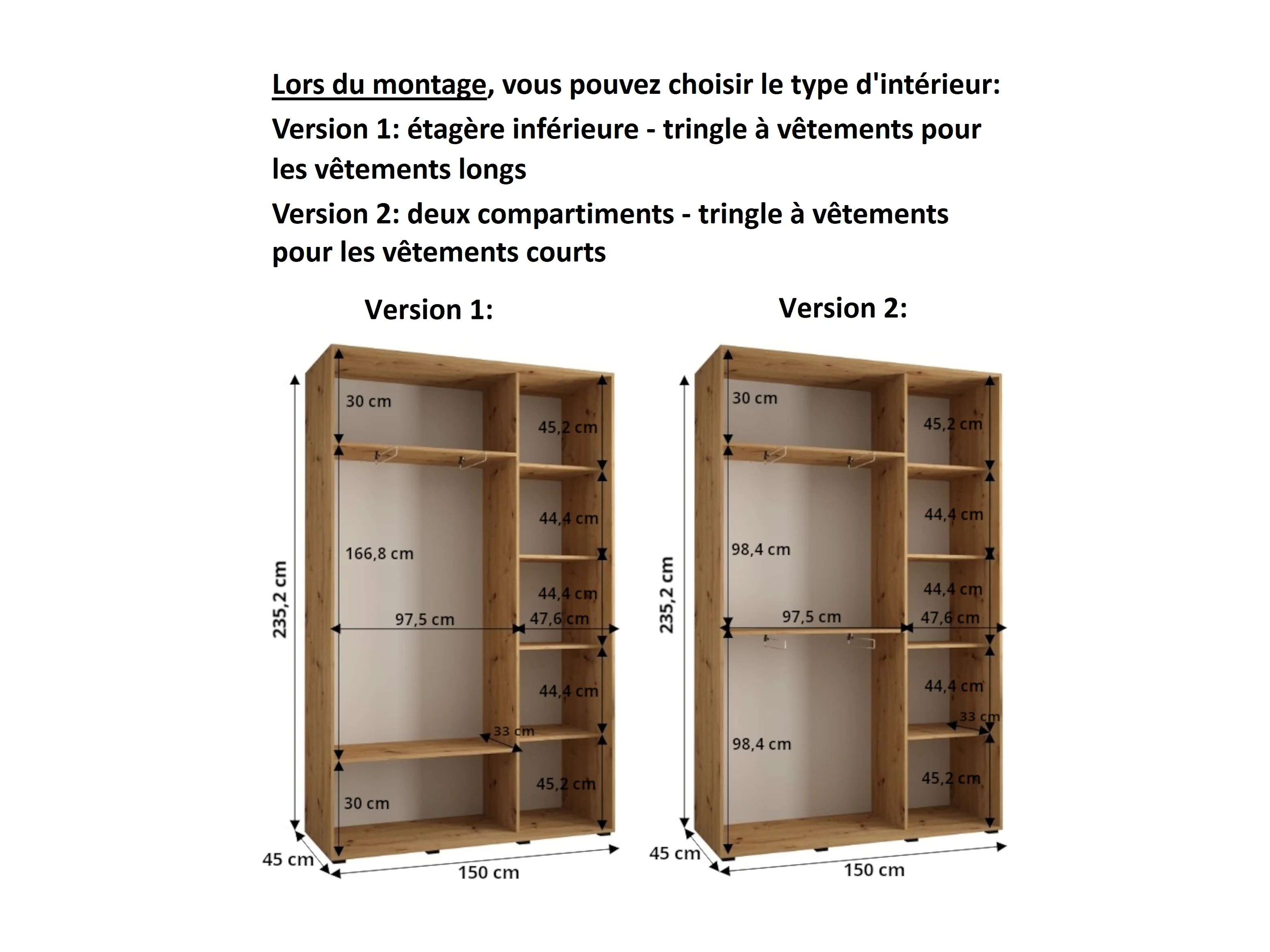 ARMOIRE LANKO 1 À PORTES COULISSANTES 235,2/150/45 3 Portes (Noir/Noir)