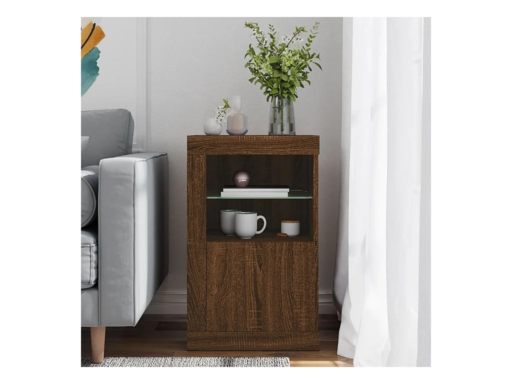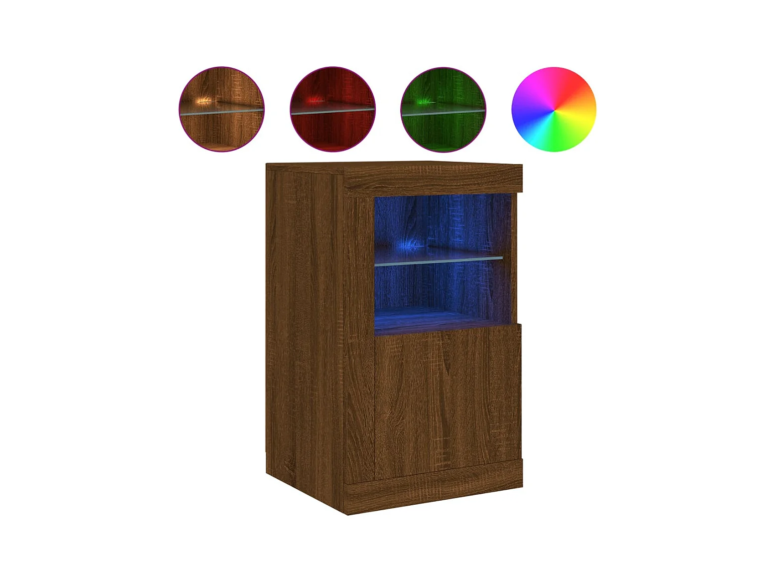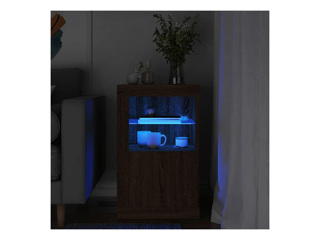 Armoire latérale avec lumières LED chêne marron bois ingénierie