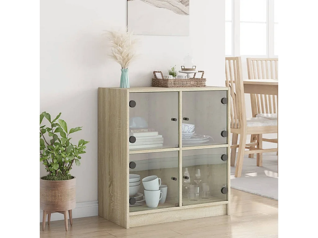 Armoire latérale avec portes en verre chêne sonoma 68x37x75,5cm