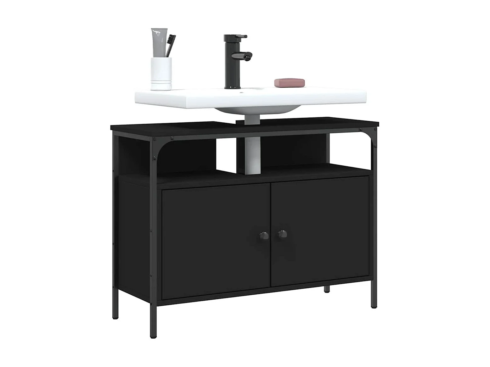 Meuble sous lavabo de salle de bain - Noir - L80-H46-P45,6 - KLAUS