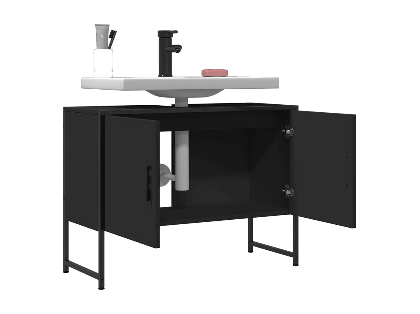 Armoire lavabo de salle de bain noir 80x33x60 bois ingénierie
