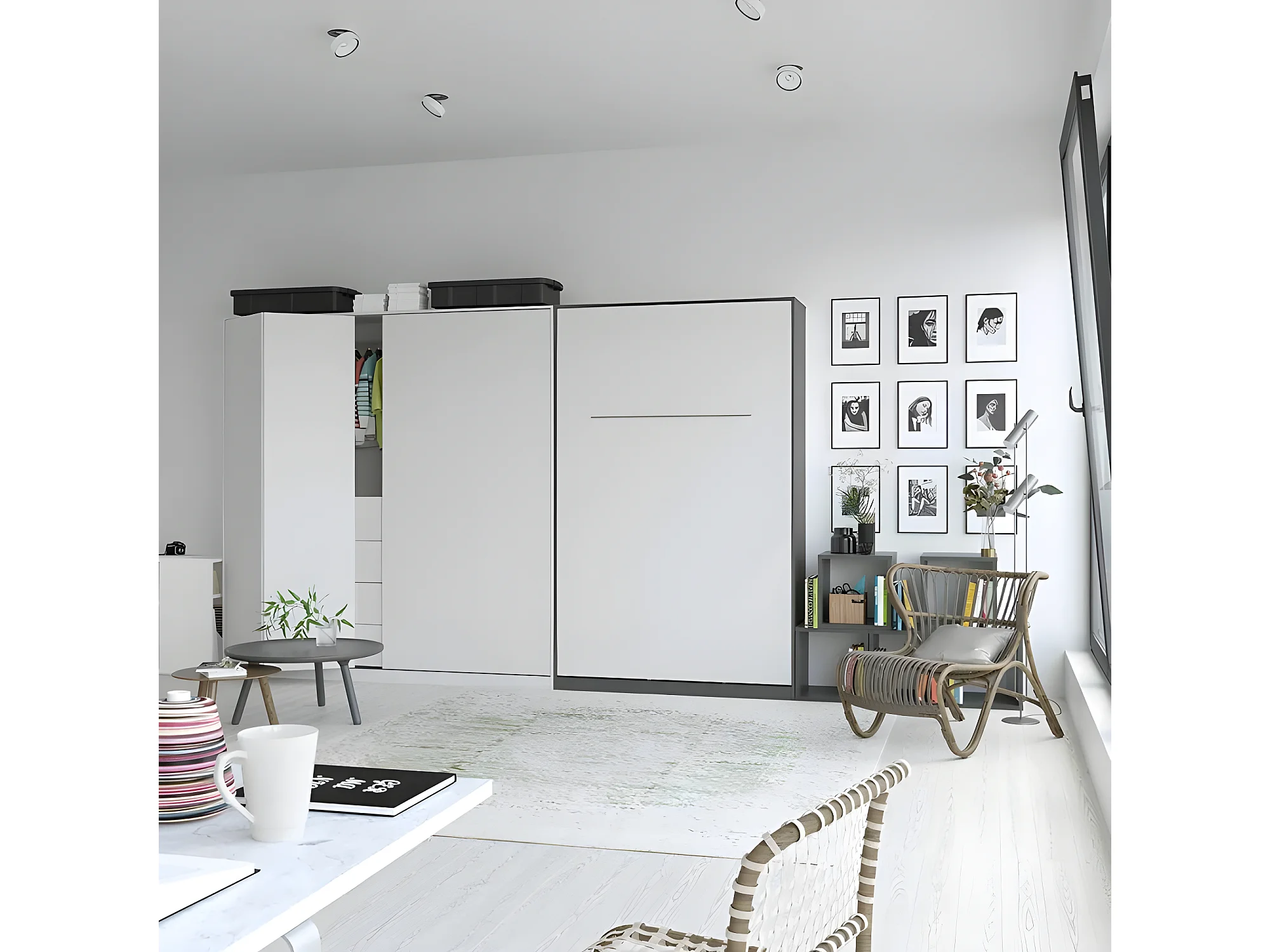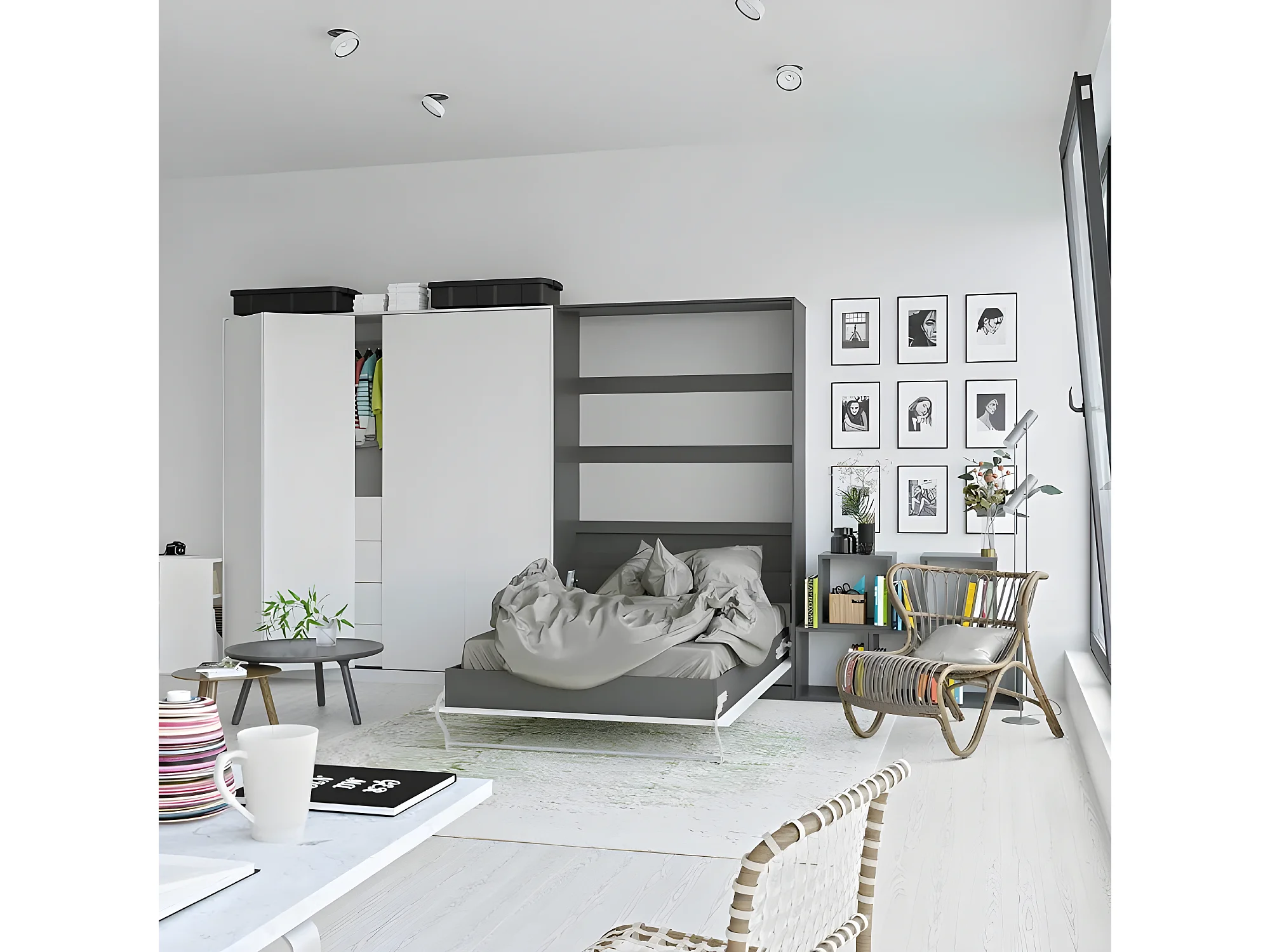 Armoire Lit escamotable 120x200cm Vertical Lit Rabattable Lit Mural Supérieur Anthracite/Blanc