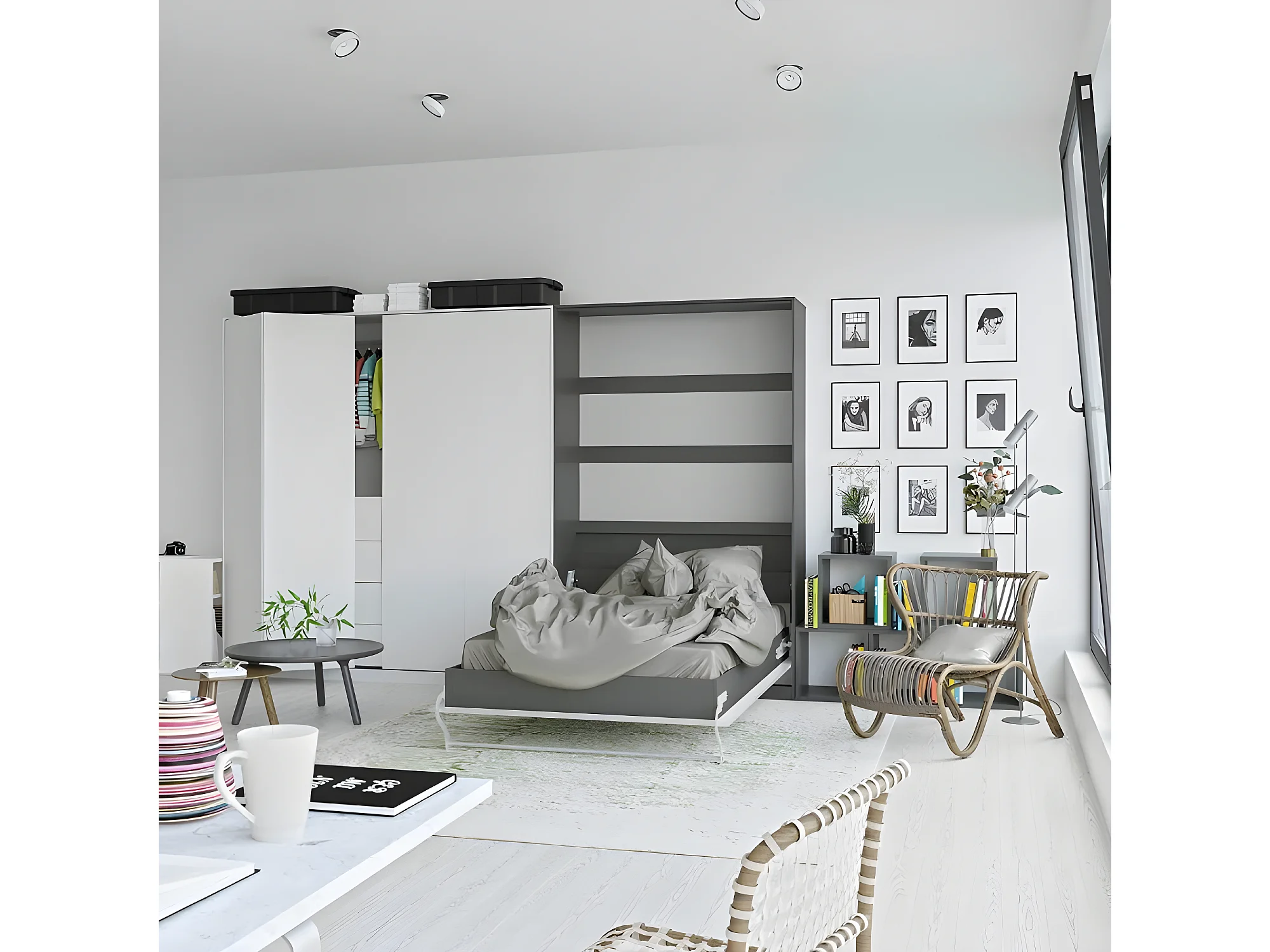 Armoire Lit escamotable 120x200cm Vertical Lit Rabattable Lit Mural Supérieur Anthracite/blanc brillant