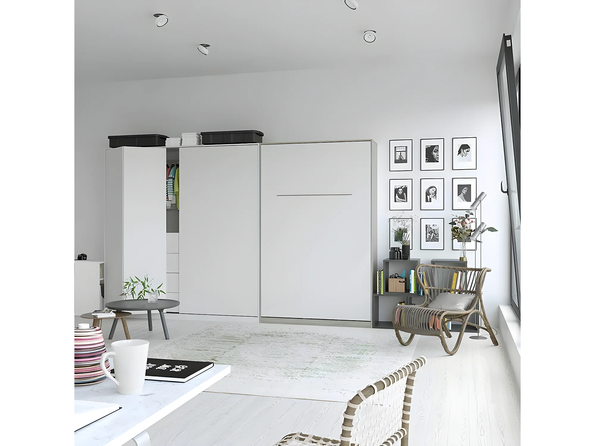 Armoire Lit escamotable 120x200cm Vertical Lit Rabattable Lit Mural Supérieur Chêne Sonoma/Blanc