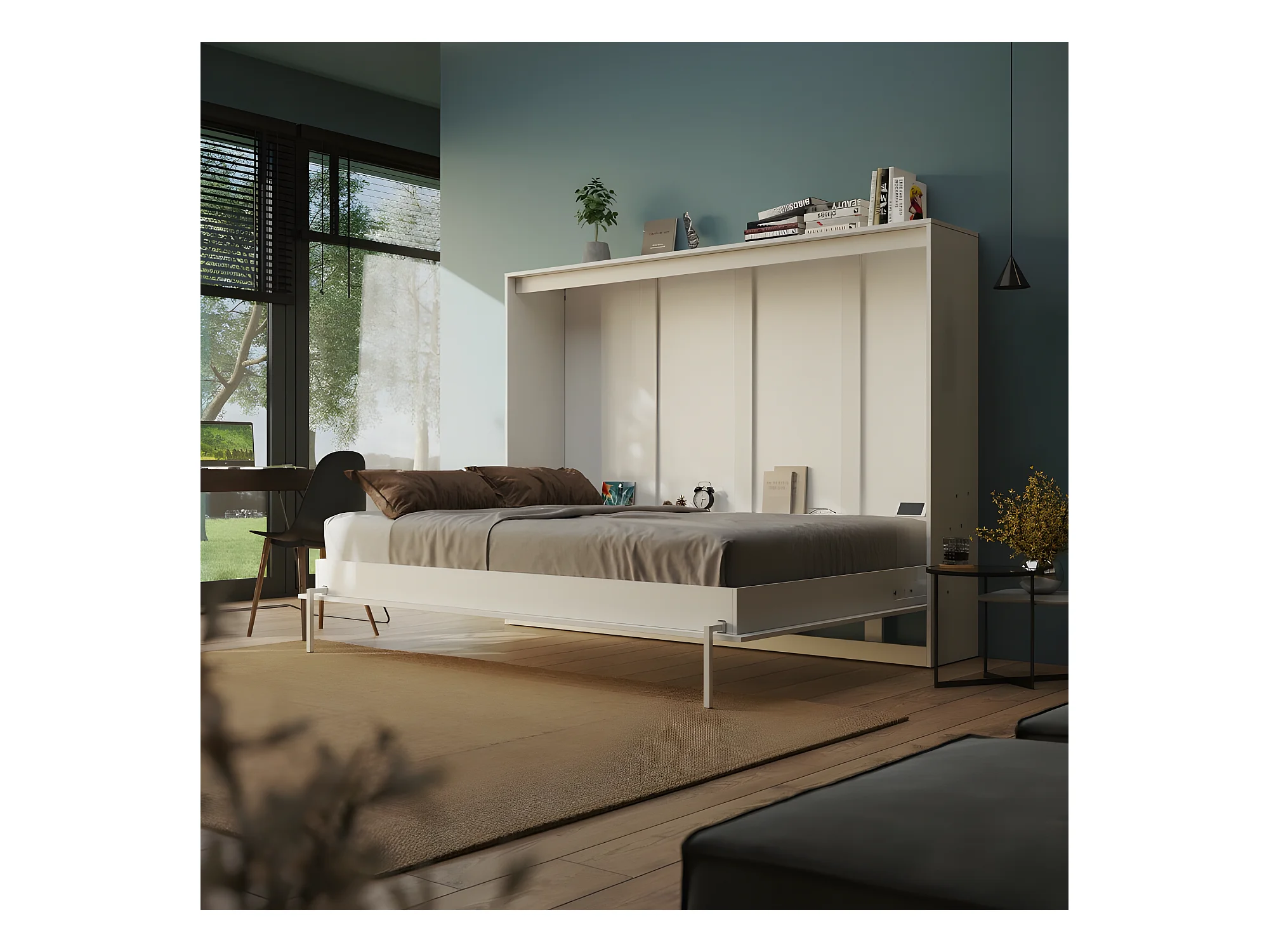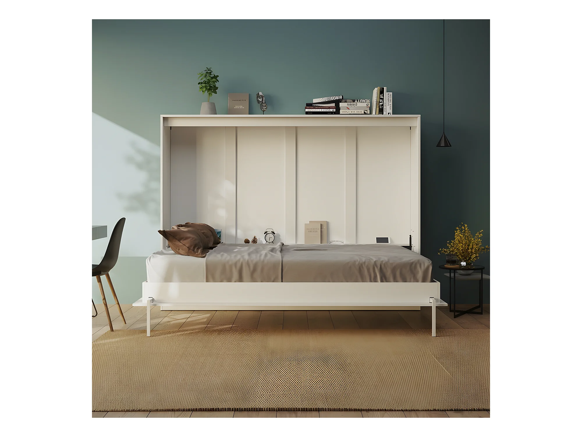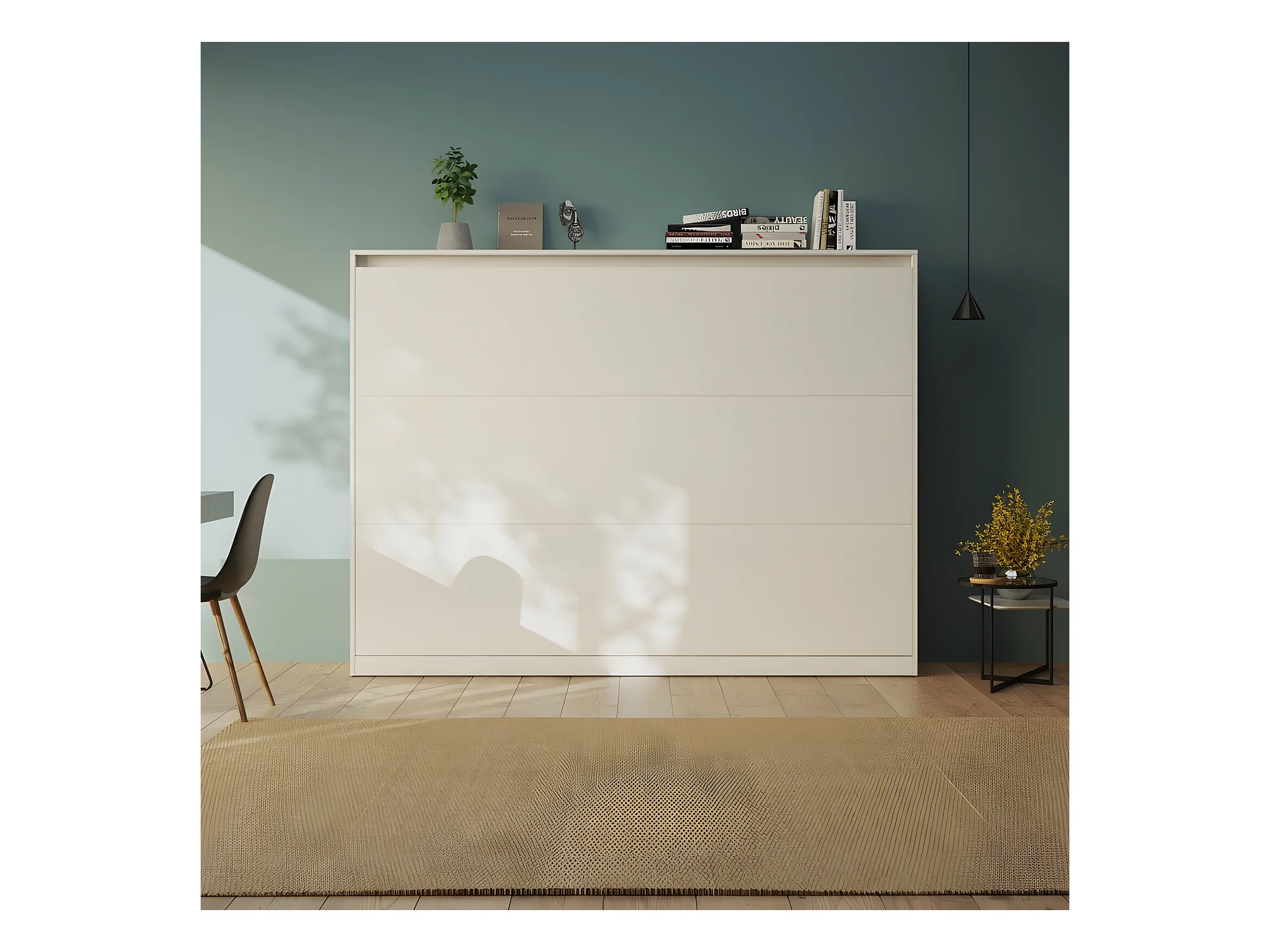 Armoire Lit escamotable 140x200cm Blanc Horizontal Lit Rabattable Lit Mural C*Adore