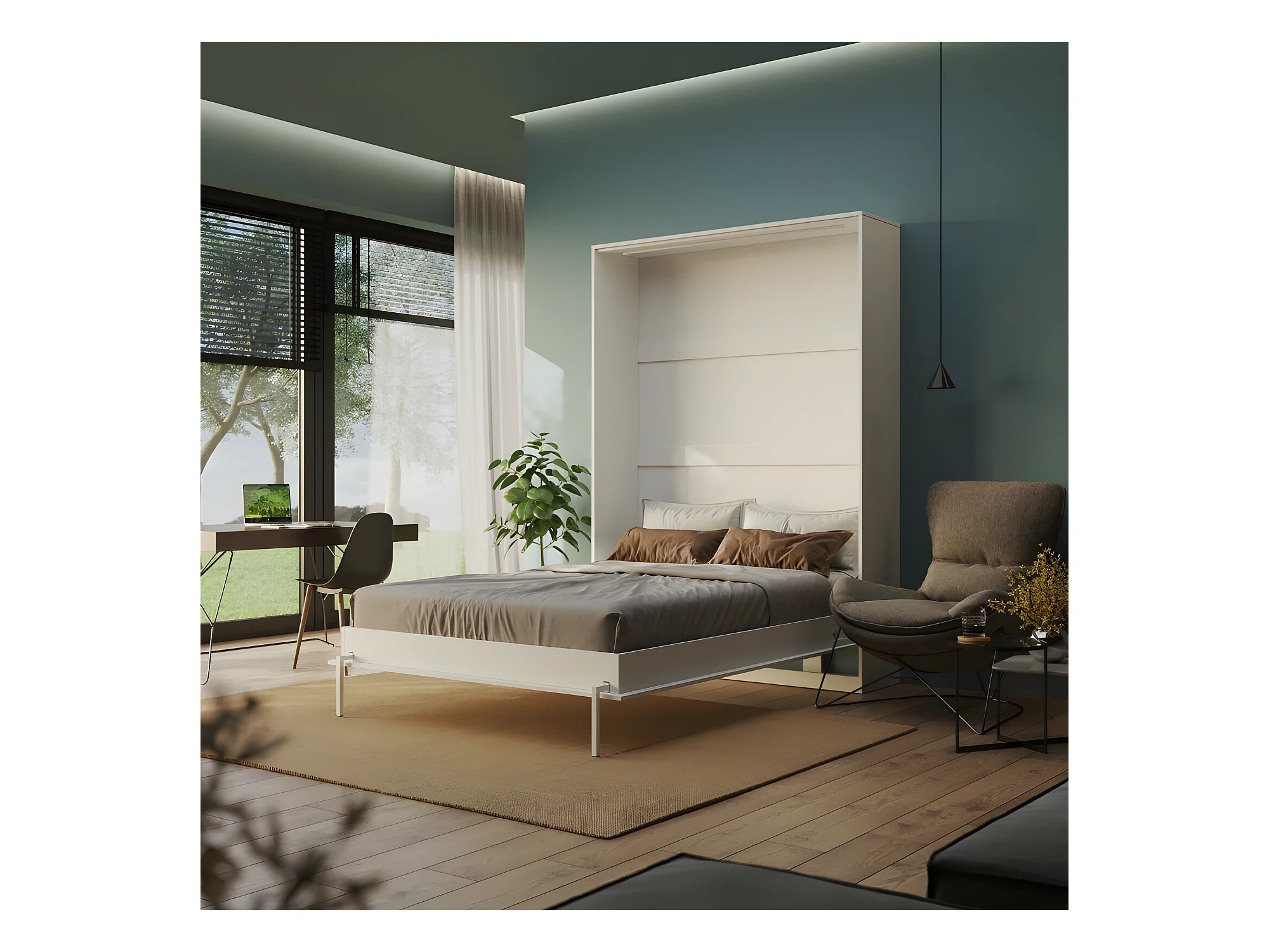 Armoire Lit escamotable 140x200cm Blanc Vertical Lit Rabattable Lit Mural C*Adore