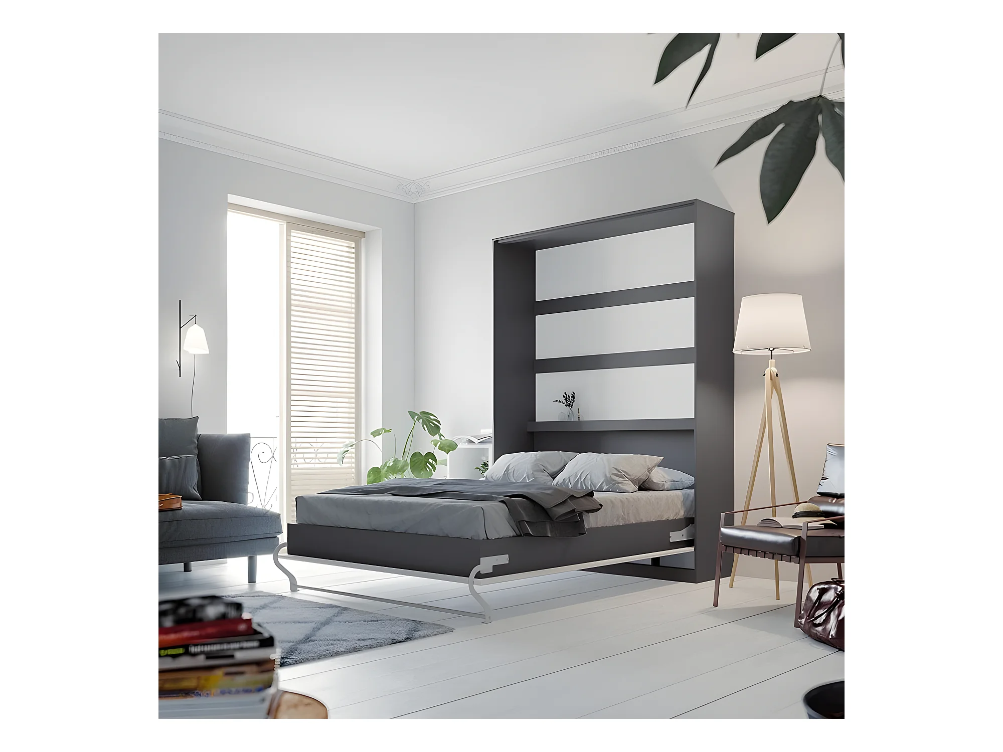 Armoire Lit escamotable 140x200cm Lit Rabattable Lit Mural Supérieur Vertical Anthracite/Blanc