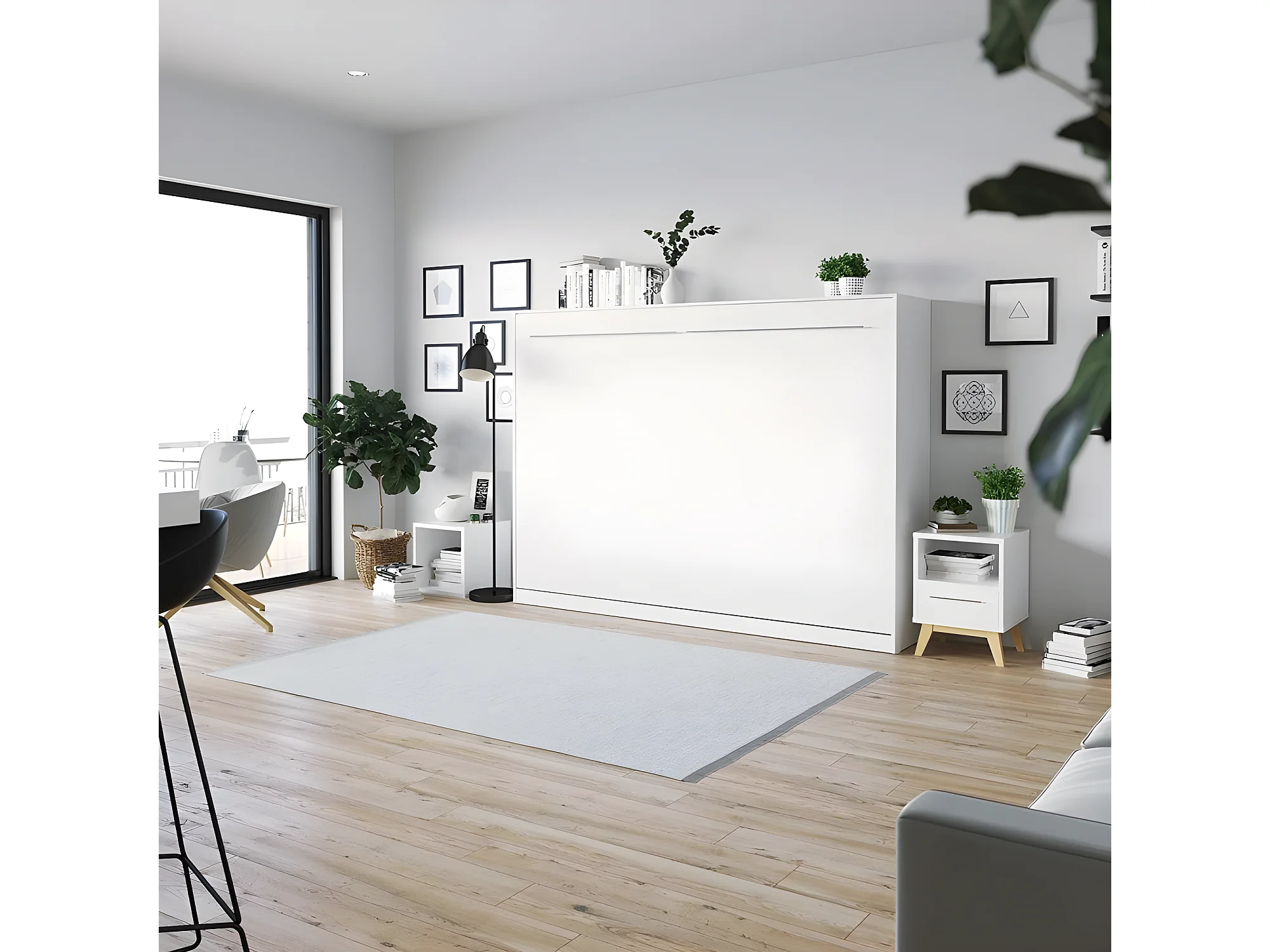 Armoire Lit escamotable 140x200cm Supérieur Horizontal Lit Rabattable Lit Mural Blanc/blanc