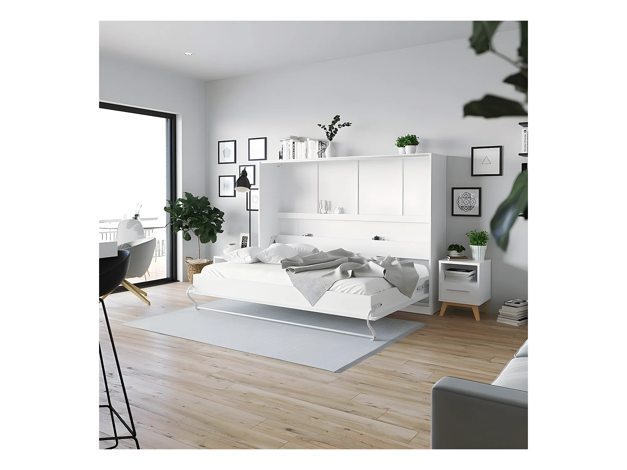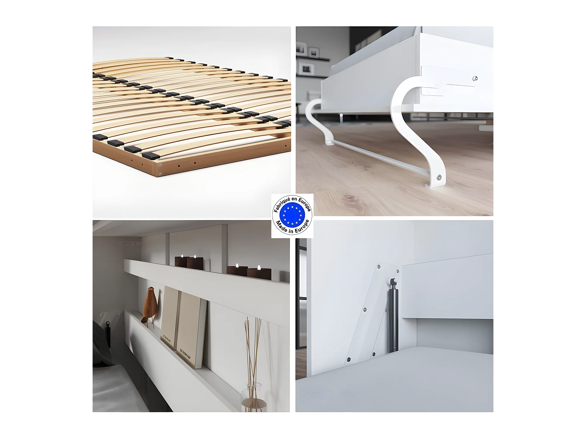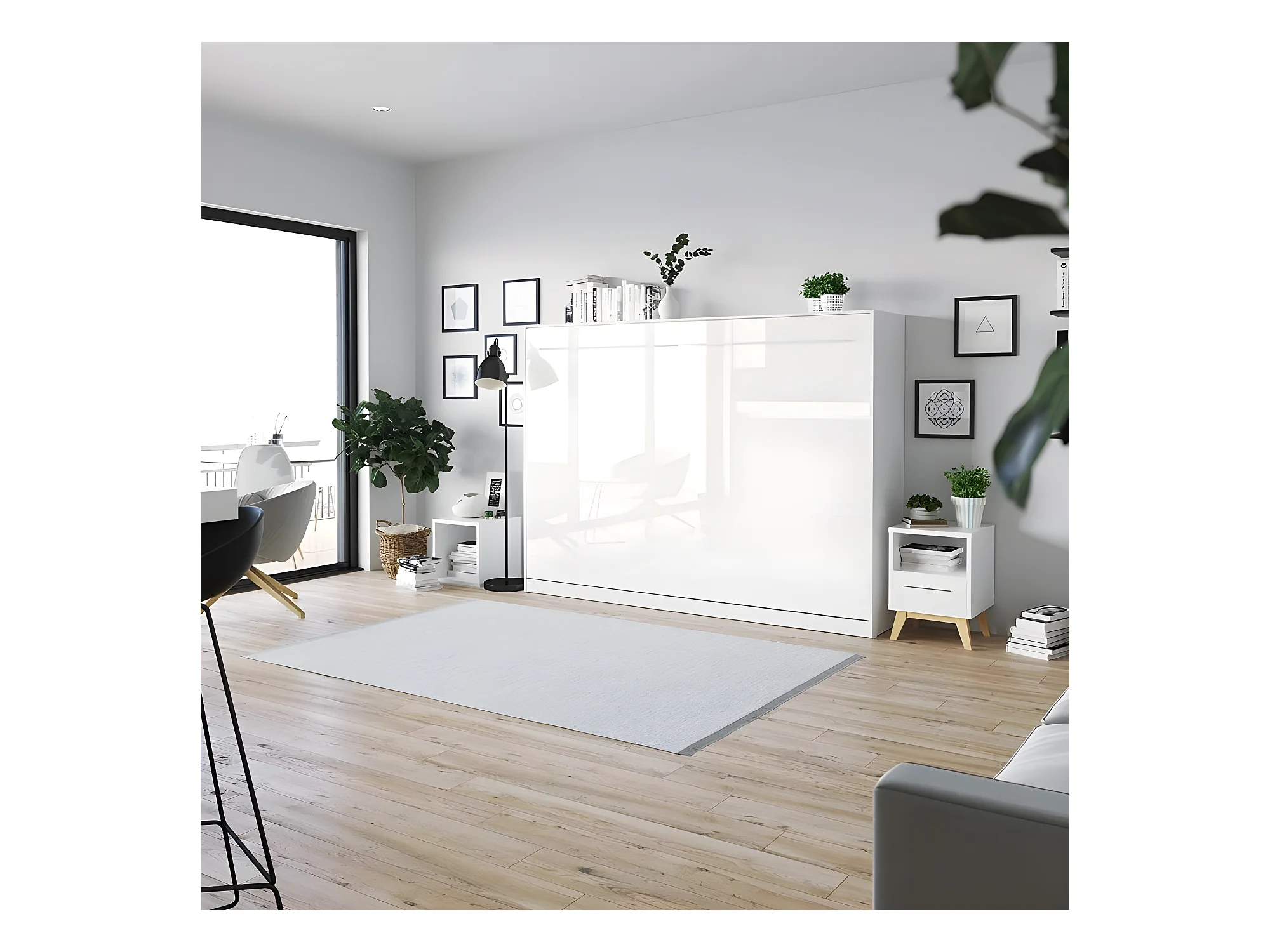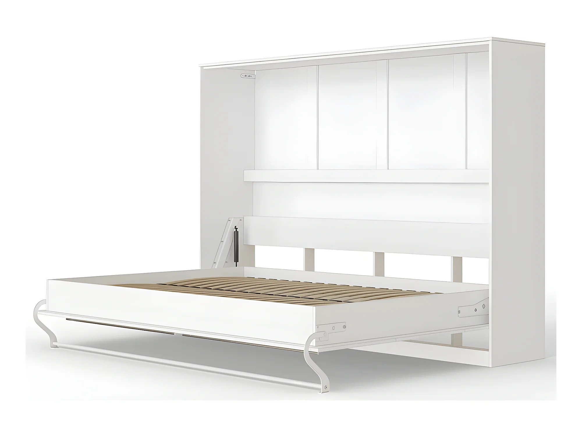 Armoire Lit escamotable 140x200cm Supérieur Horizontal Lit Rabattable Lit Mural Blanc/Blanc brillant