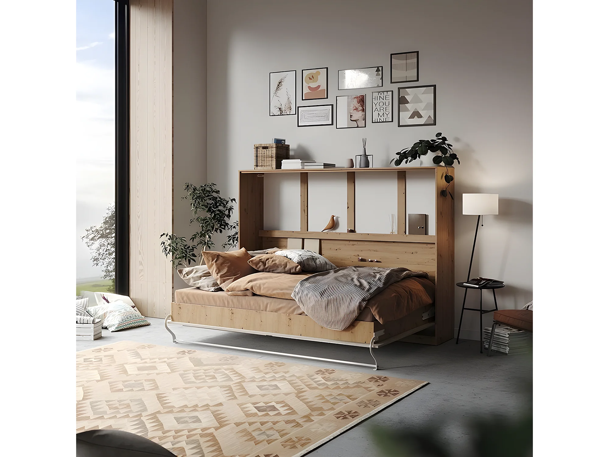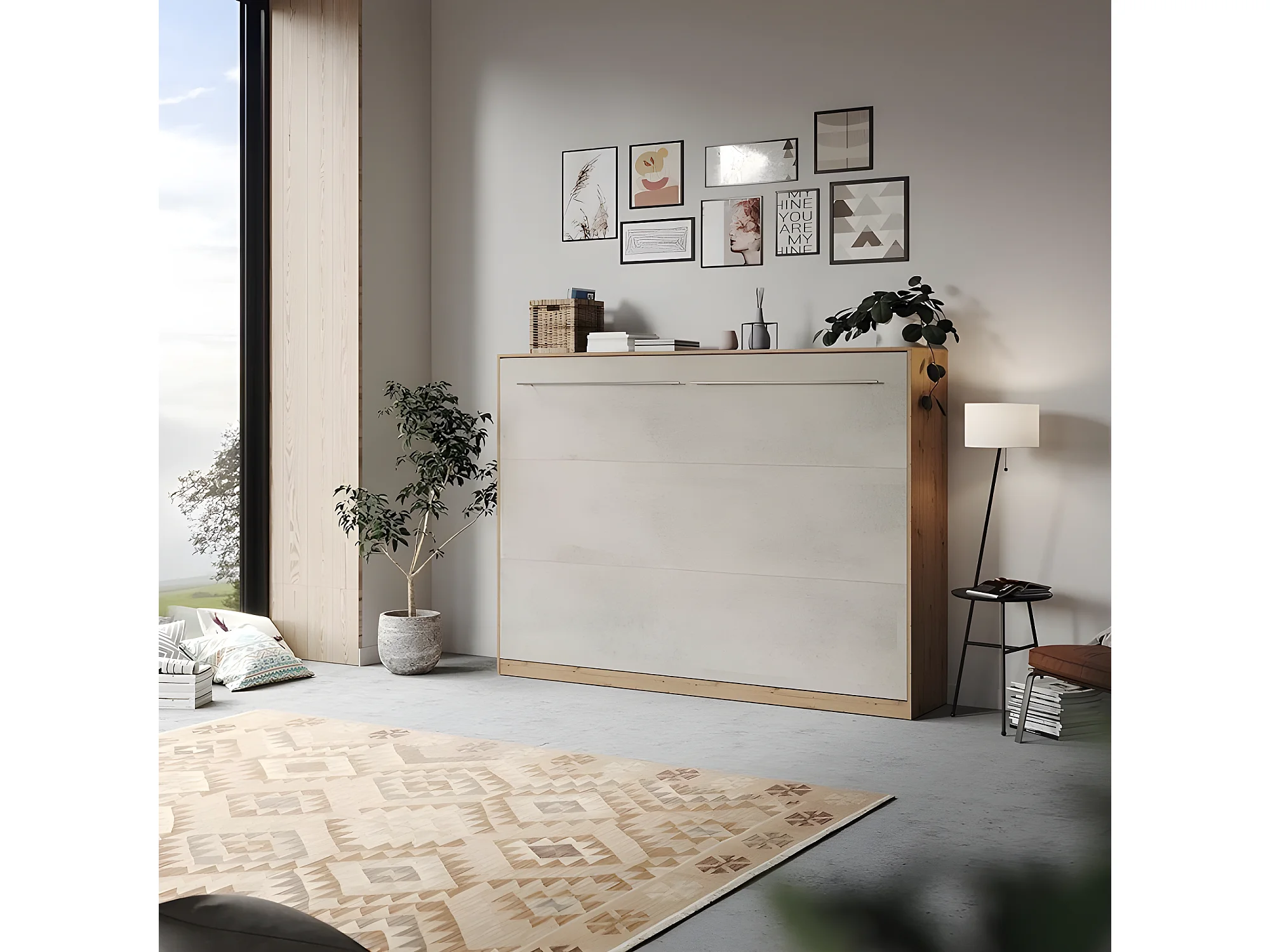 Armoire Lit escamotable 140x200cm Supérieur Horizontal Lit Rabattable Lit Mural Chêne Sauvage/Béton