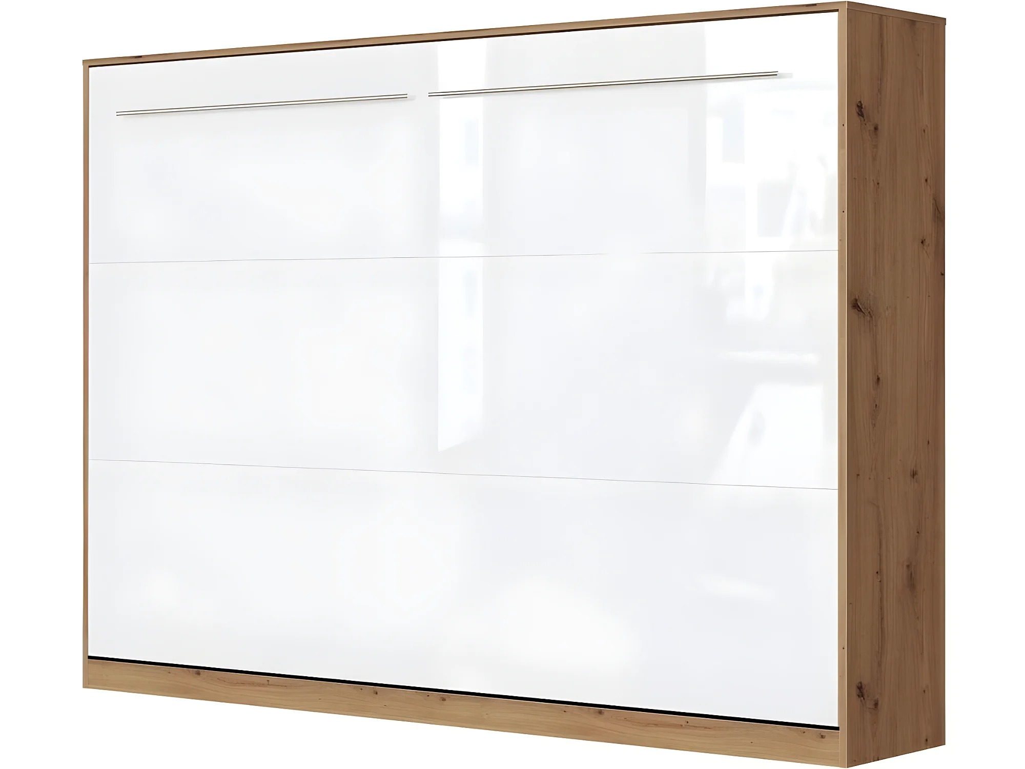 Armoire Lit escamotable 140x200cm Supérieur Horizontal Lit Rabattable Lit Mural Chêne Sauvage/blanc brillant