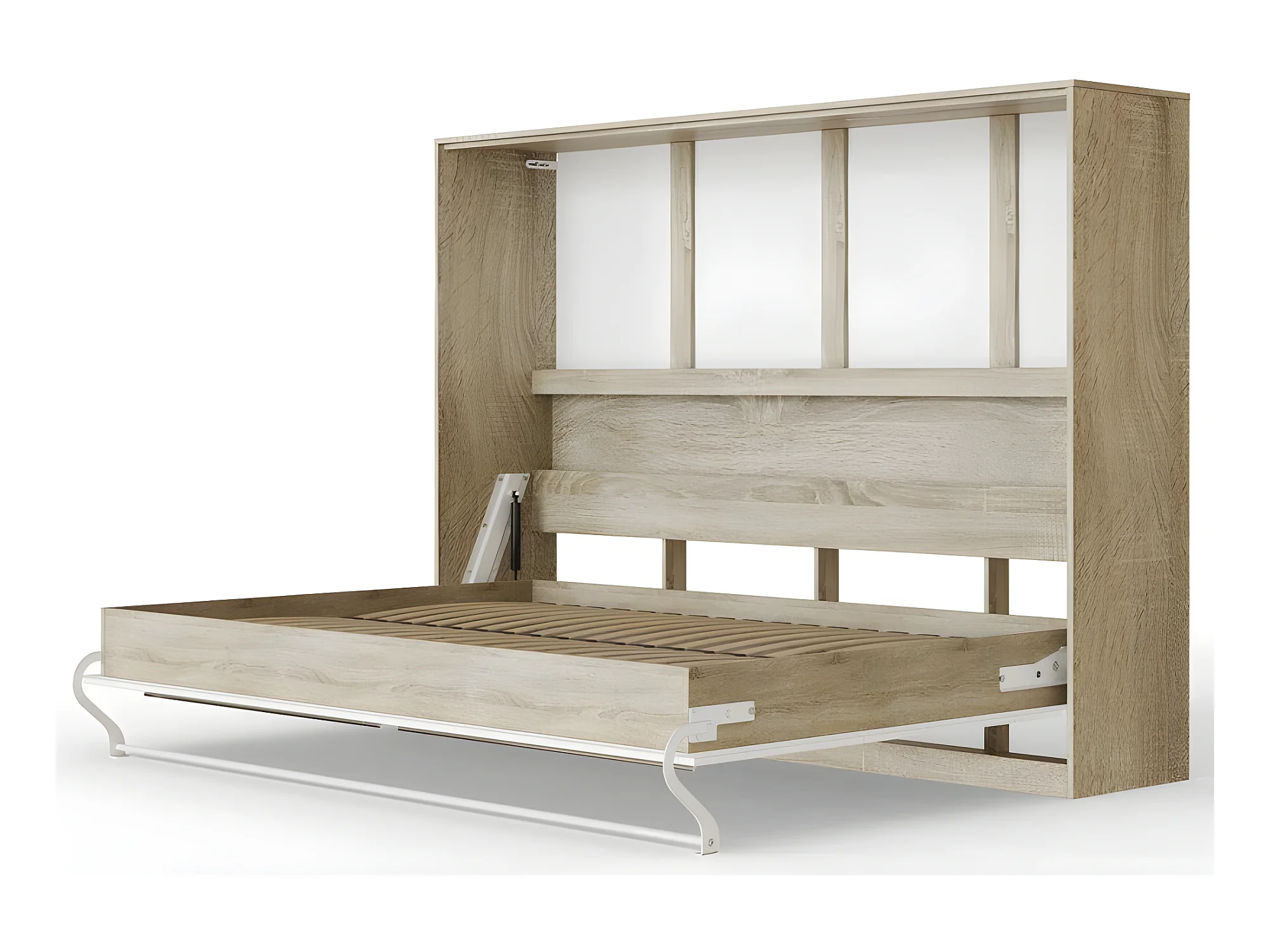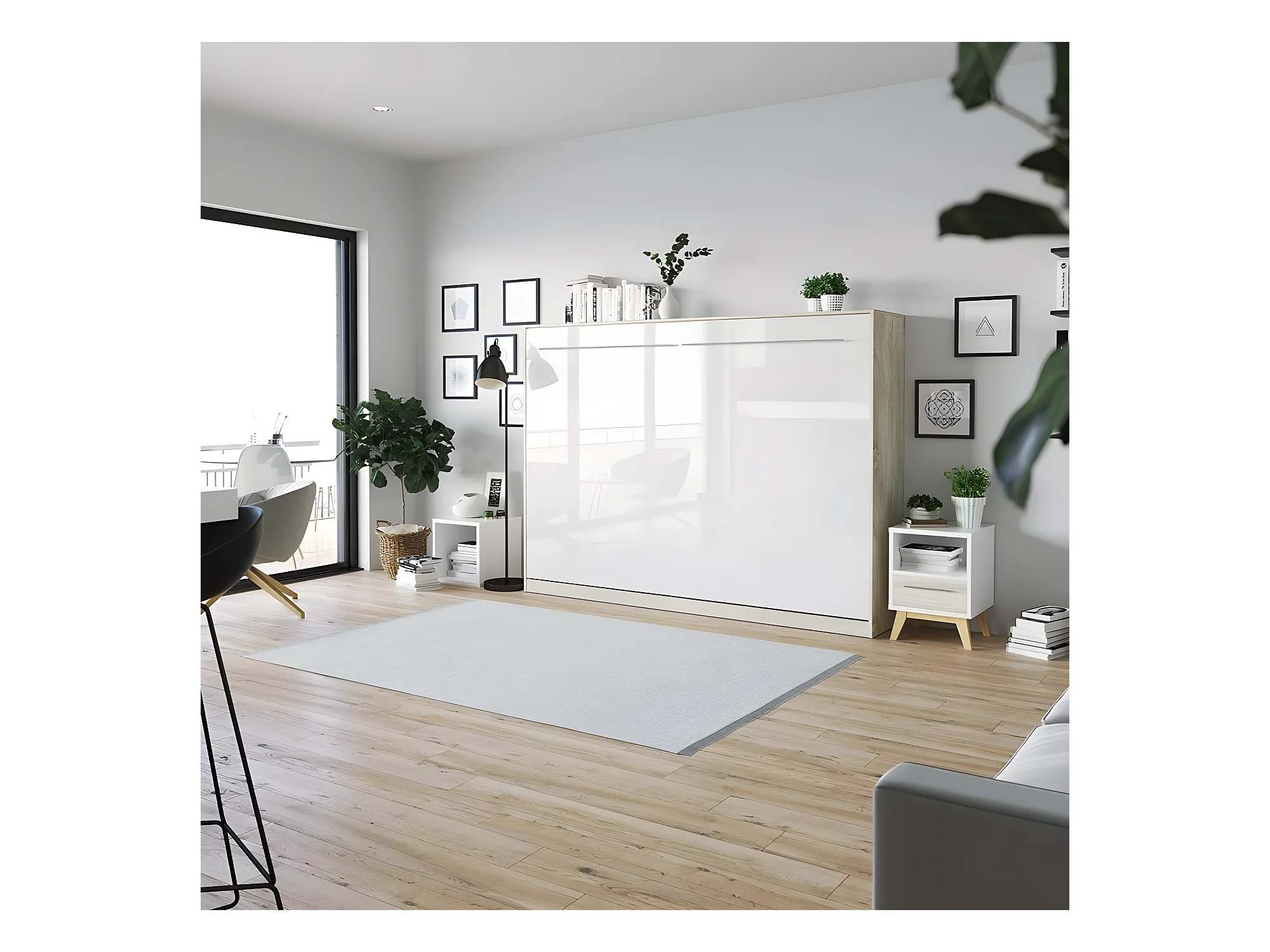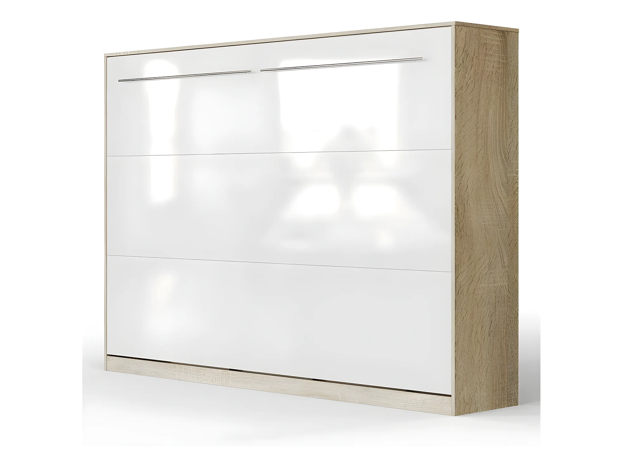 Armoire Lit escamotable 140x200cm Supérieur Horizontal Lit Rabattable Lit Mural Chêne Sonoma/Blanc brillant