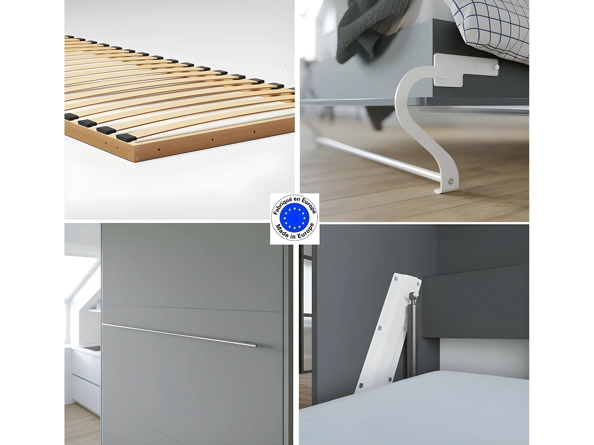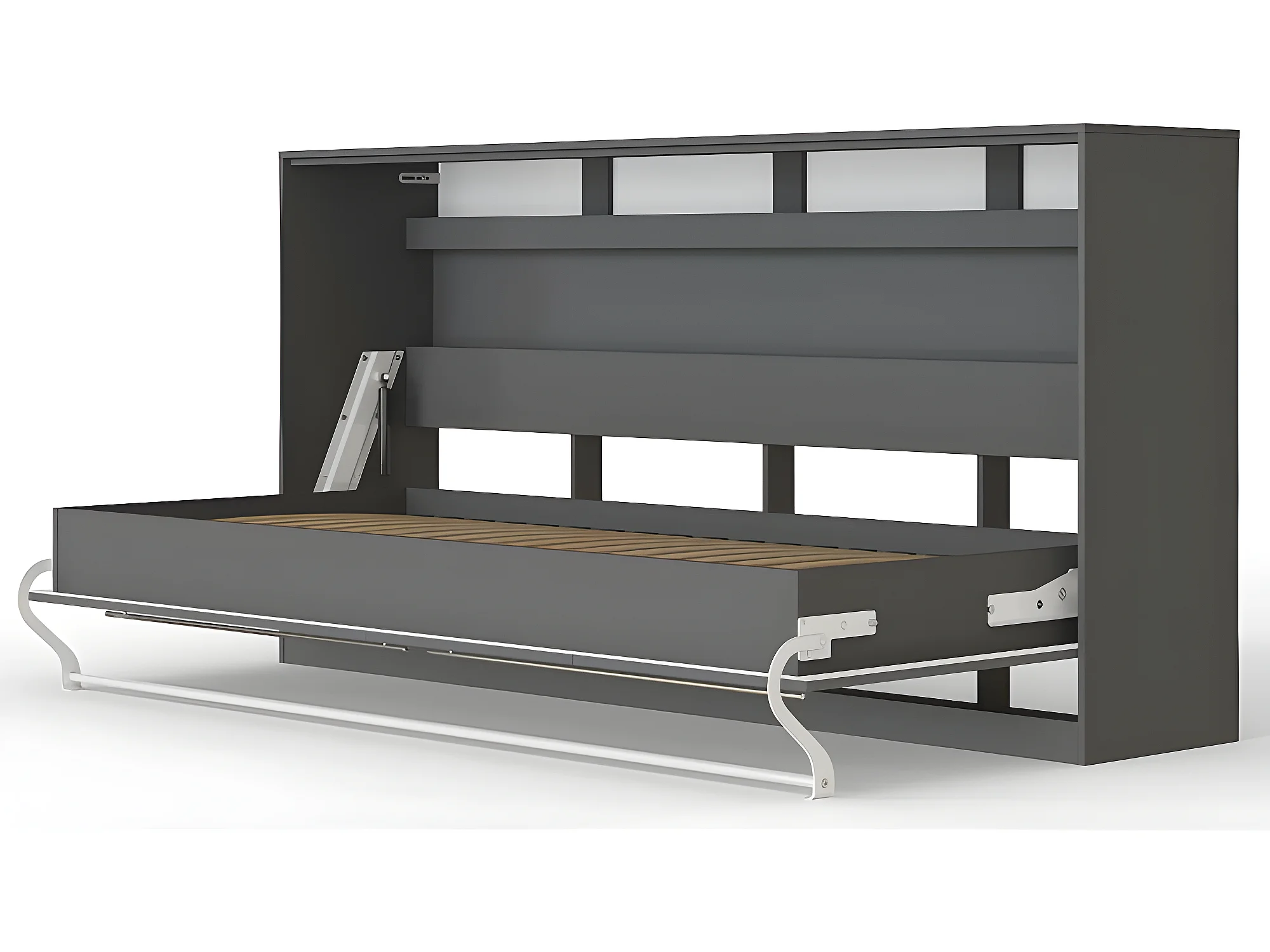 Armoire Lit escamotable 90x200cm Supérieur Horizontal Lit Rabattable Lit Mural Anthracite/Anthracite