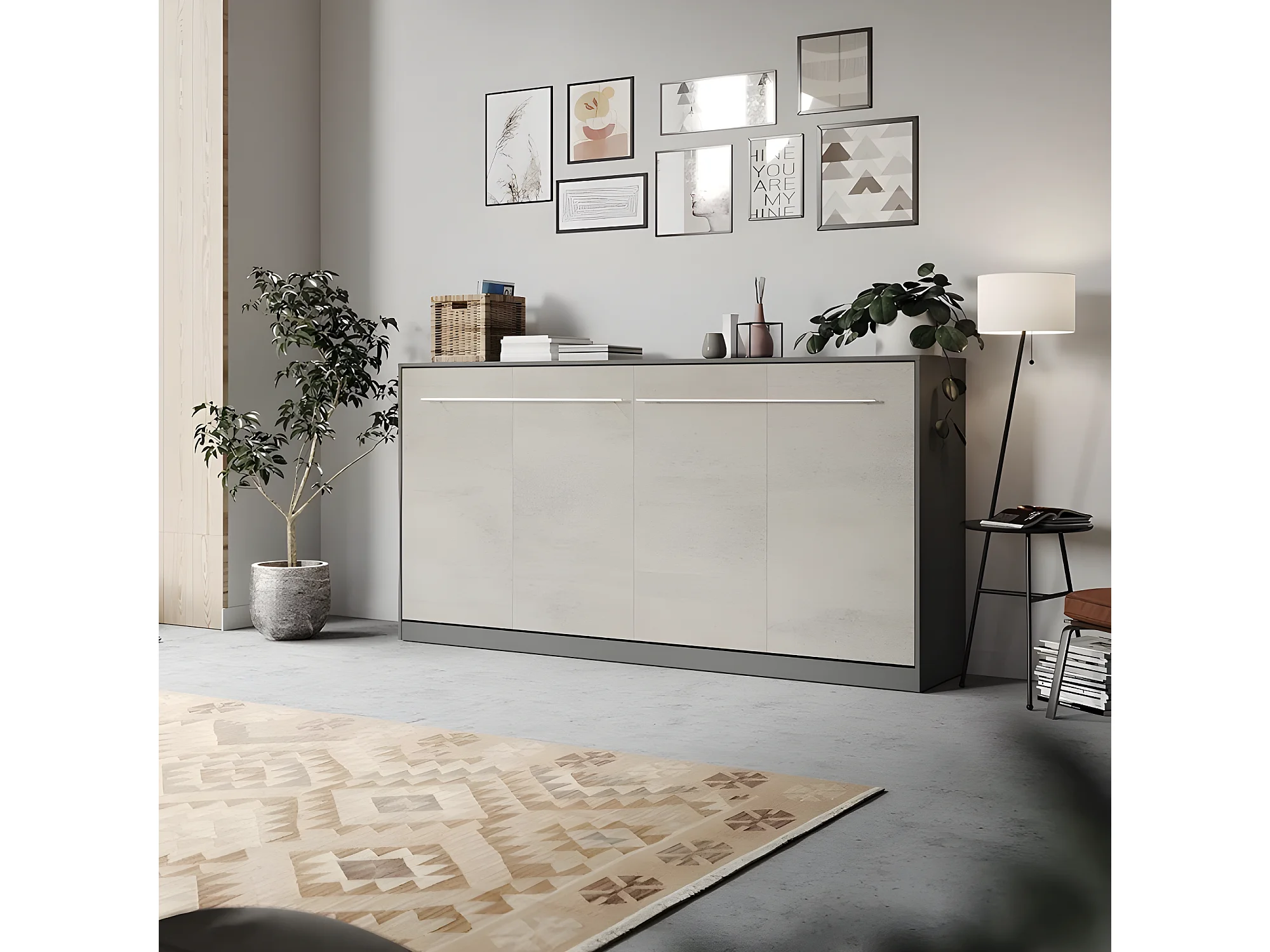 Armoire Lit escamotable 90x200cm Supérieur Horizontal Lit Rabattable Lit Mural Anthracite/Béton