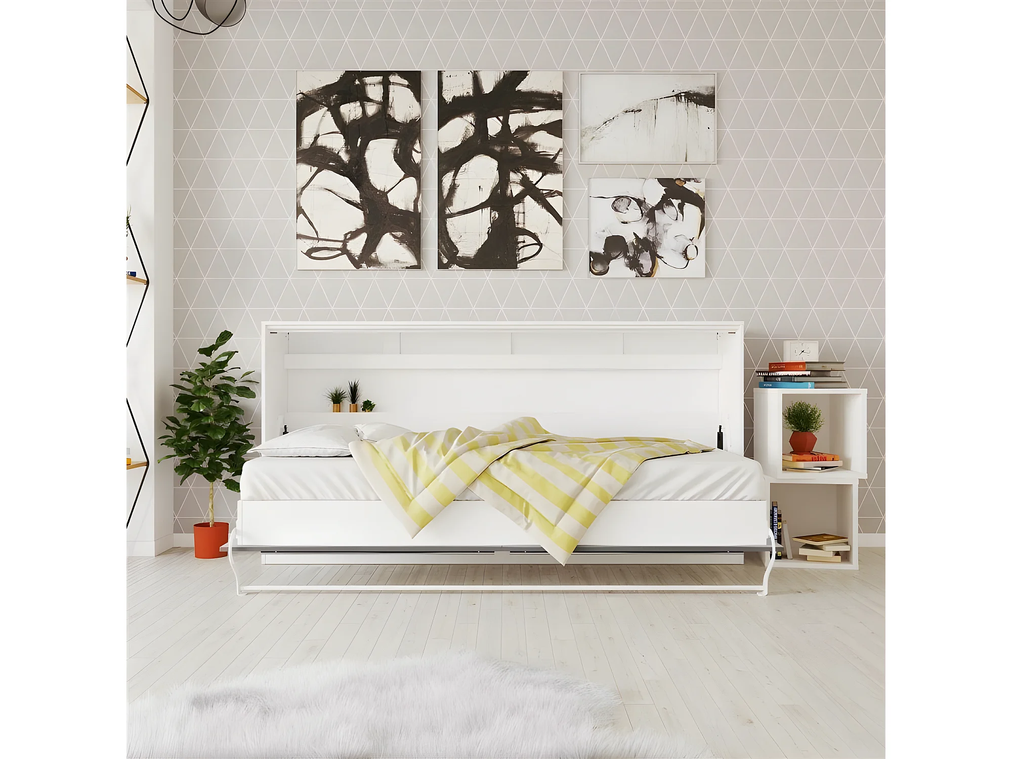 Armoire Lit escamotable 90x200cm Supérieur Horizontal Lit Rabattable Lit Mural Blanc/Anthracite