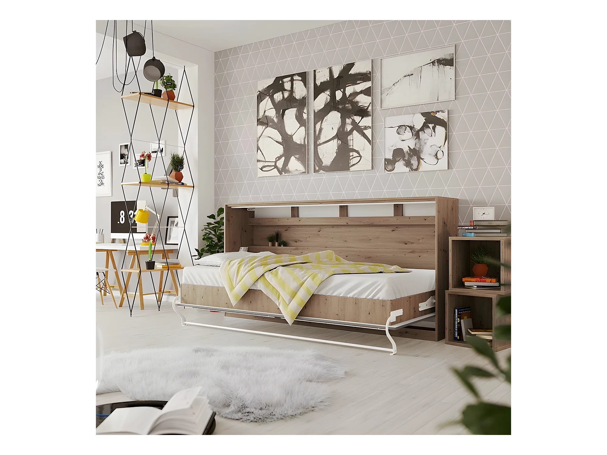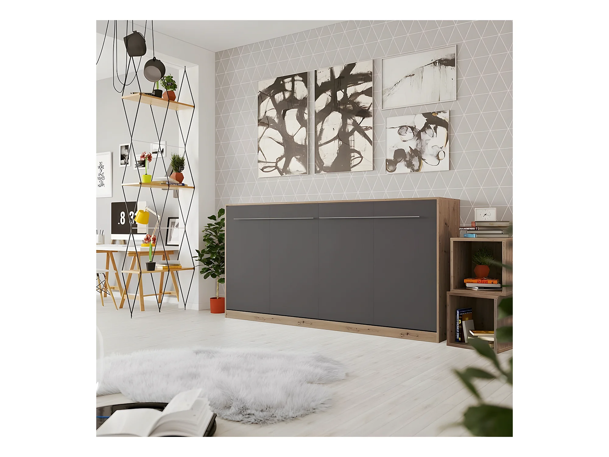 Armoire Lit escamotable 90x200cm Supérieur Horizontal Lit Rabattable Lit Mural Chêne Sauvage/Anthracite