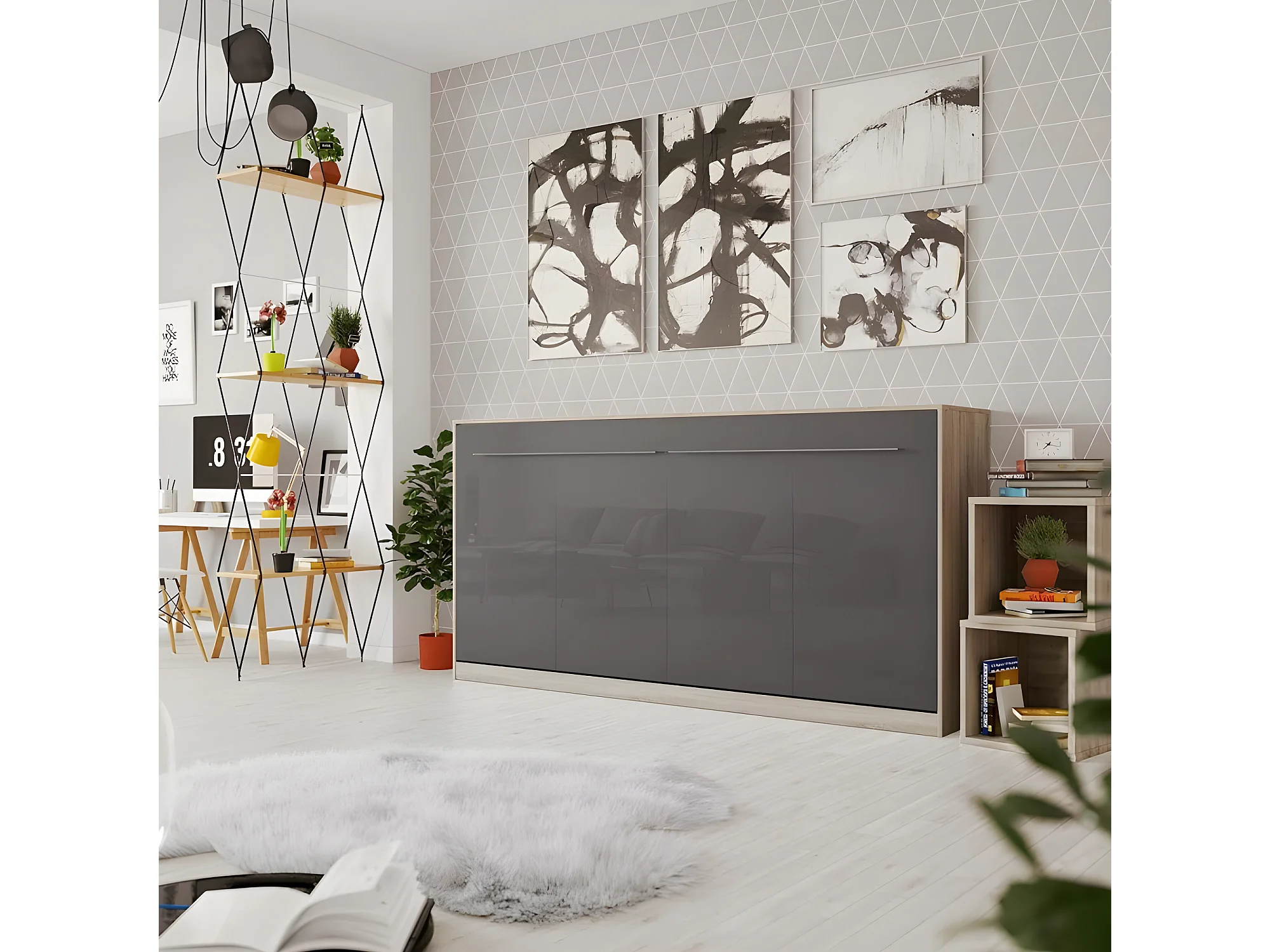 Armoire Lit escamotable 90x200cm Supérieur Horizontal Lit Rabattable Lit Mural Chêne Sonoma/Anthracite brillant