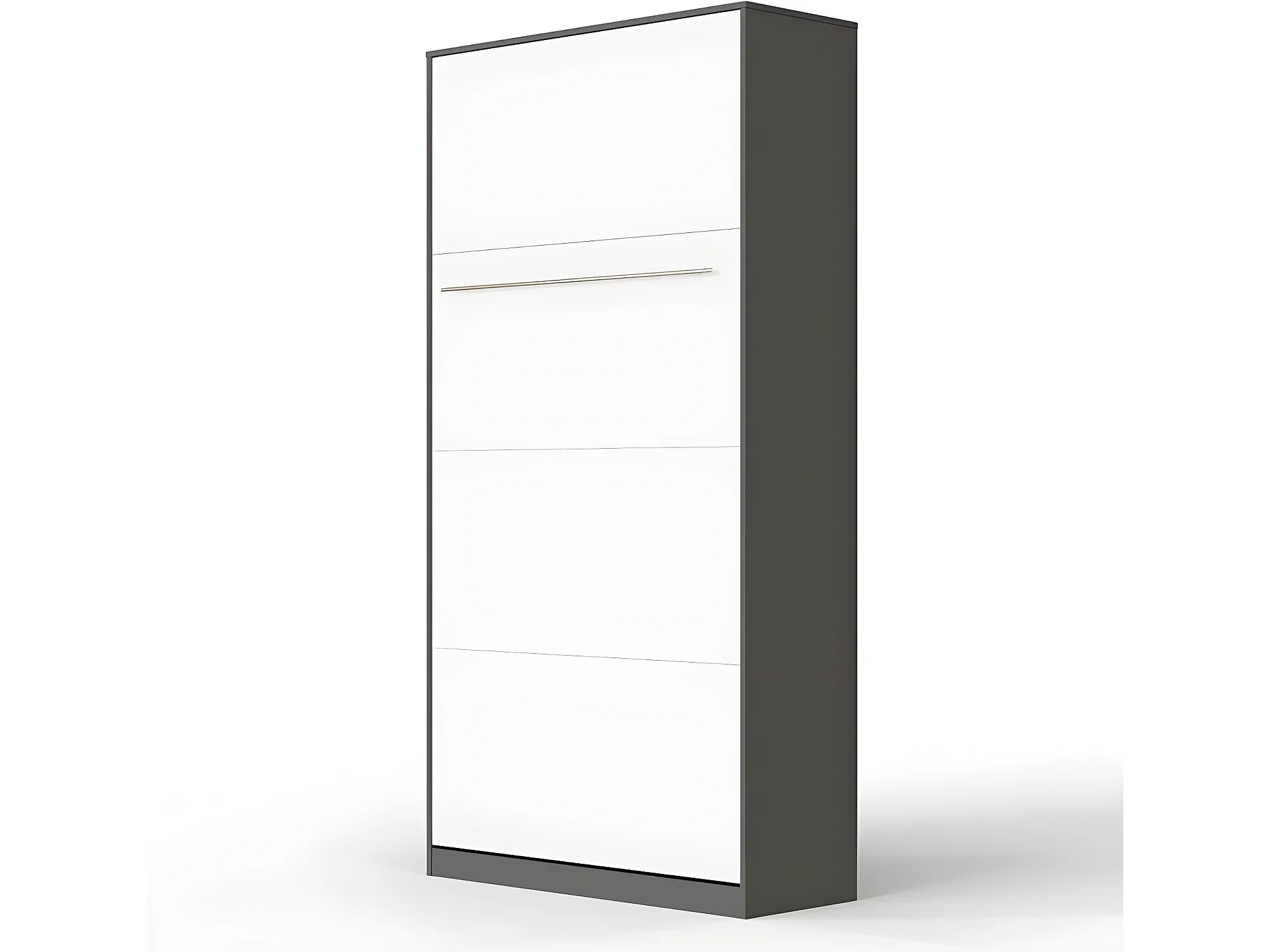 Armoire Lit escamotable 90x200cm Vertical Lit Rabattable Lit Mural Supérieur Anthracite/Blanc