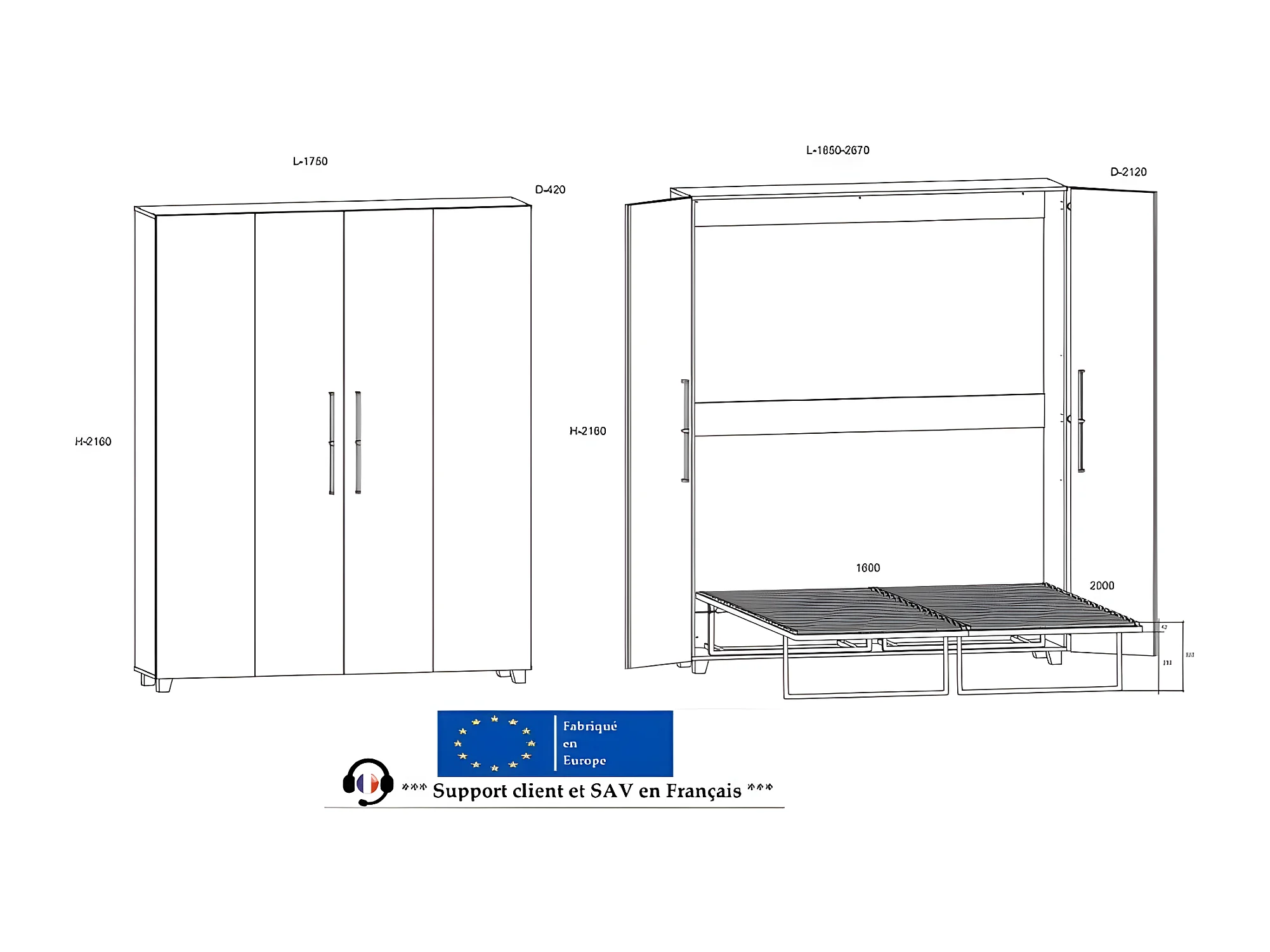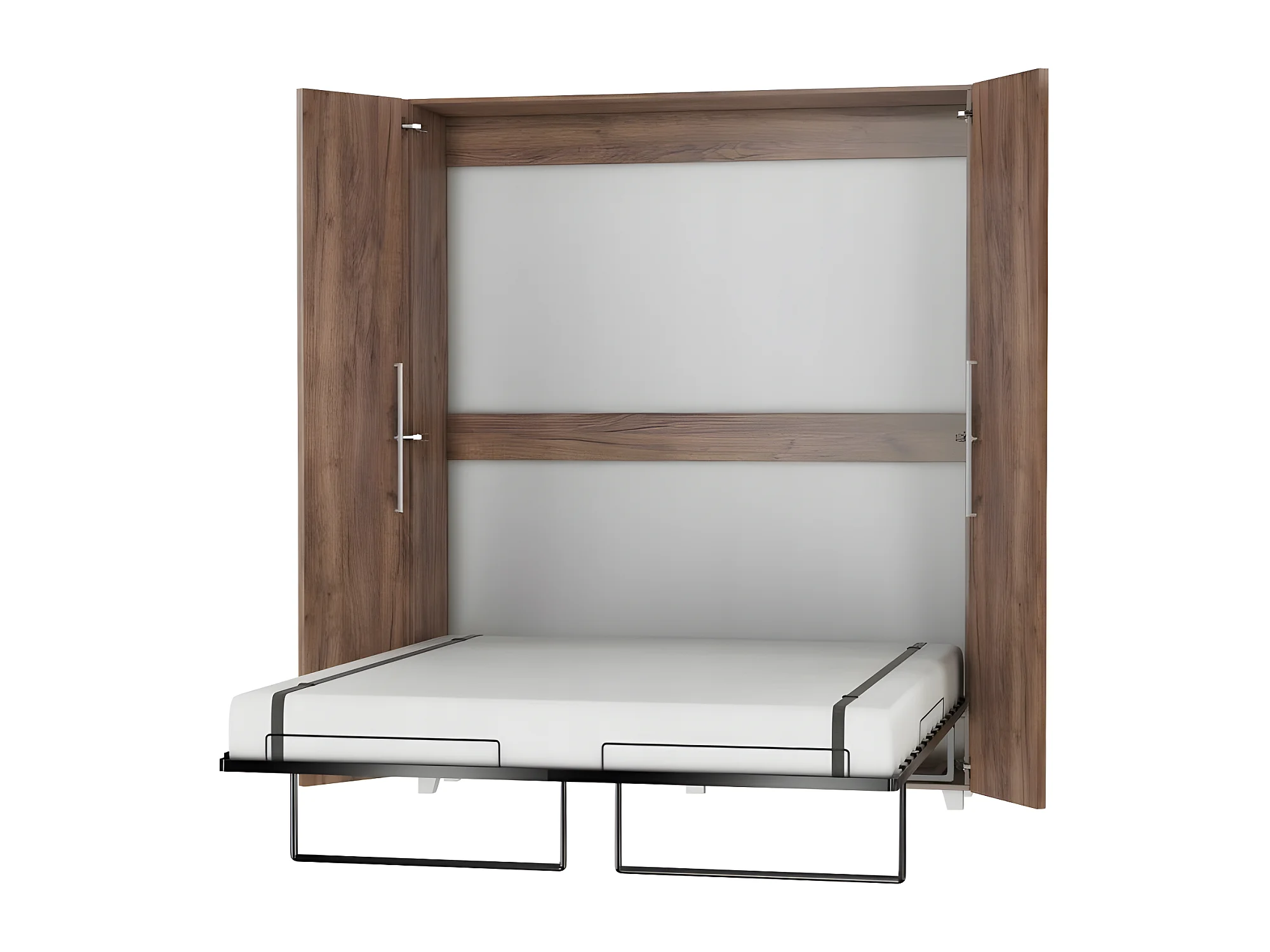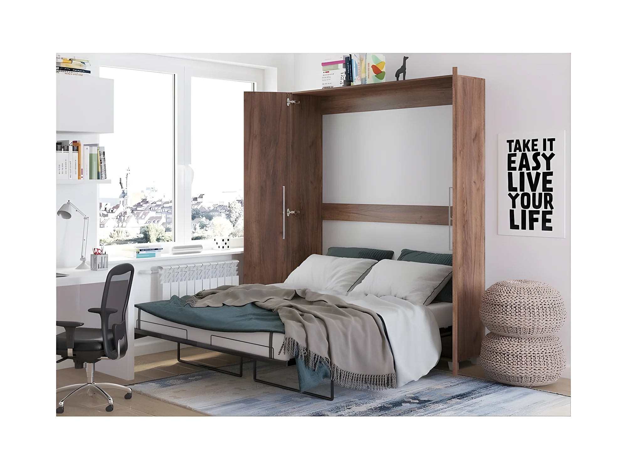 Armoire Lit escamotable Vertical 160x200 cm couleur Tabac foncé avec porte Lit Rabattable Lit Mural Todor