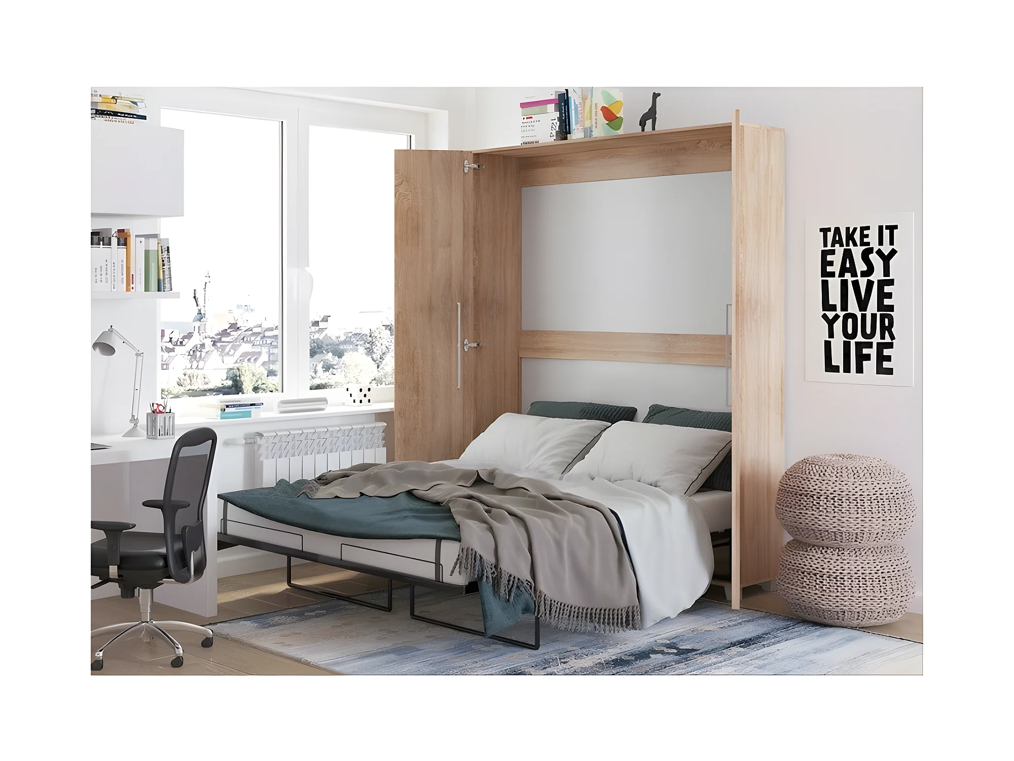 Armoire Lit escamotable Vertical 160x200 cm Sonoma artisan avec porte Lit Rabattable Lit Mural Todor