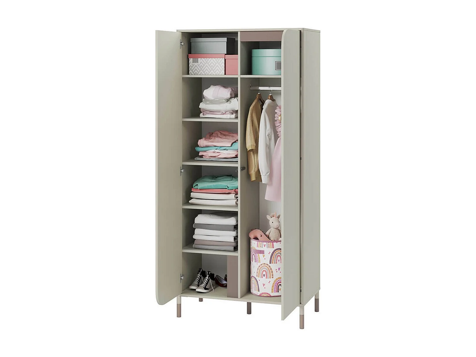 Armoire Lomsono 100, Beige, 201x92x50cm, Portes d'armoire: Avec des charnières