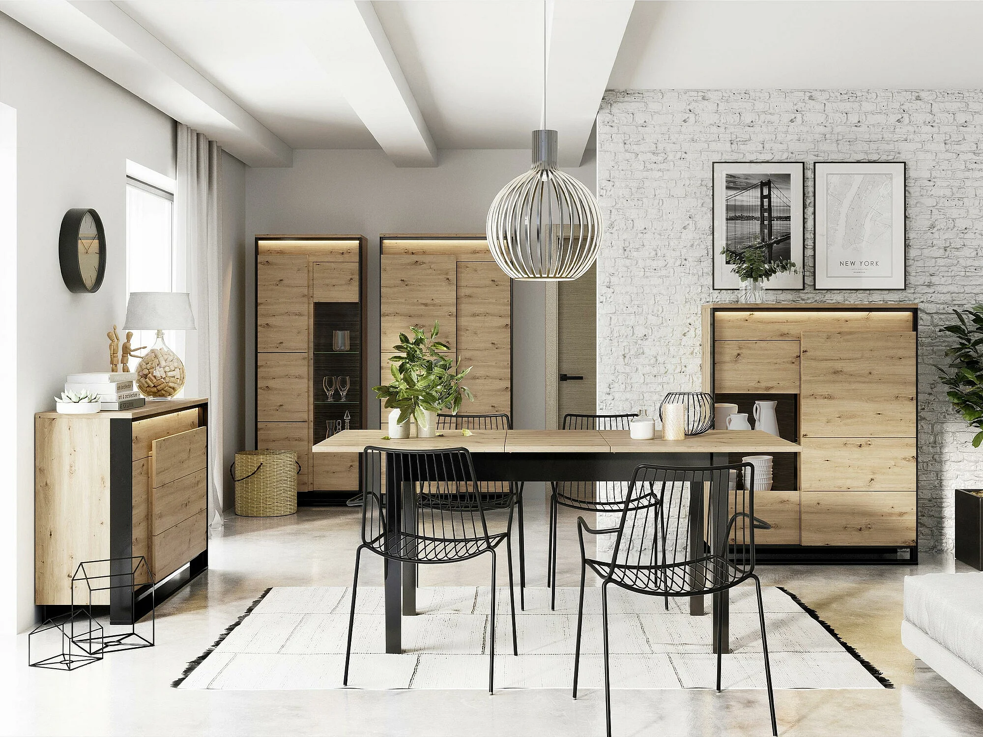 Armoire Luliru 100, Noir|Chêne Artisan, 195x95x50cm, Nombre d'étagères: 5