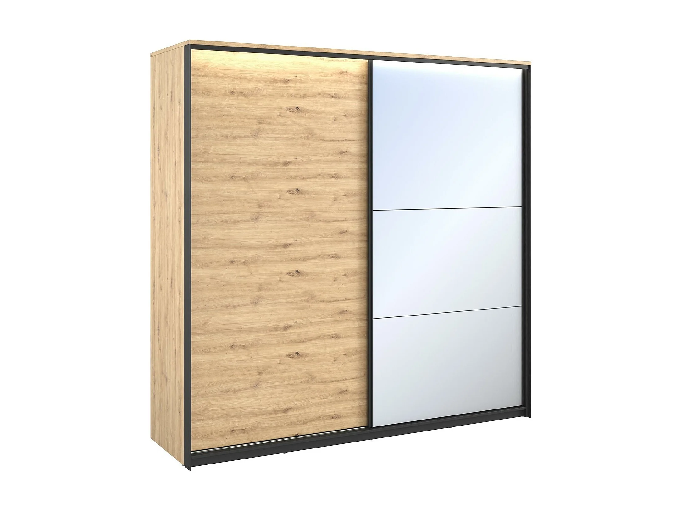 Armoire Luliru 111, Chêne Artisan|Noir, 221x220x68cm, Portes d'armoire: Coulissantes