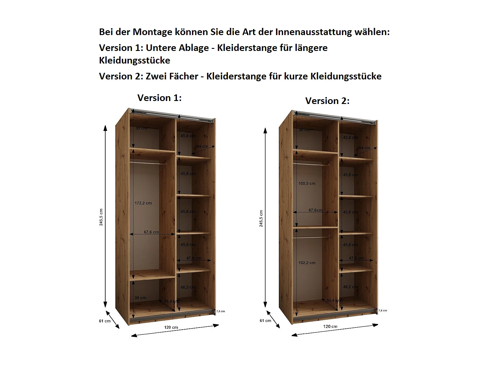 Armoire Lux 2 245,5/120/64 (Blanc/Artisan/Noir)