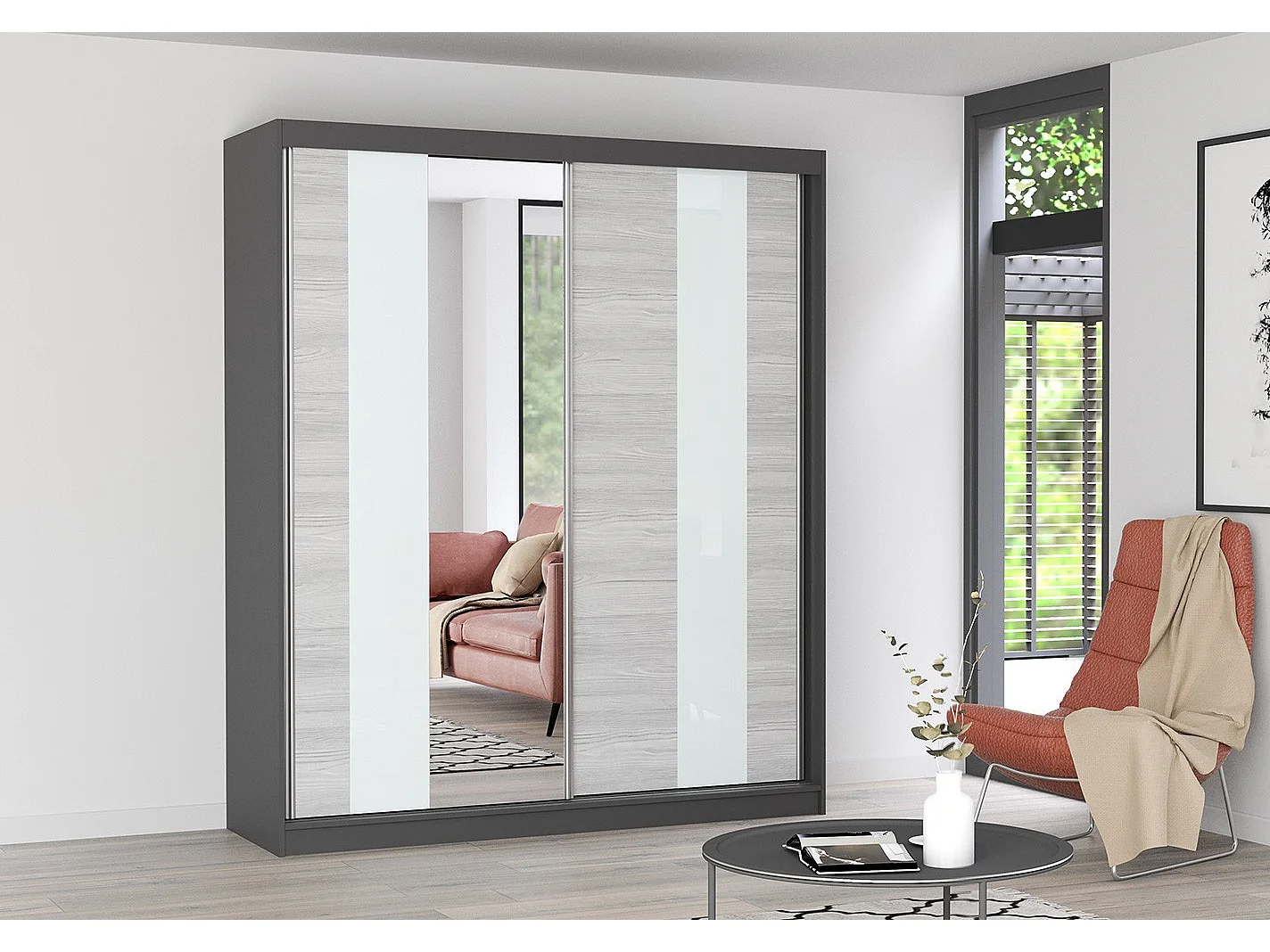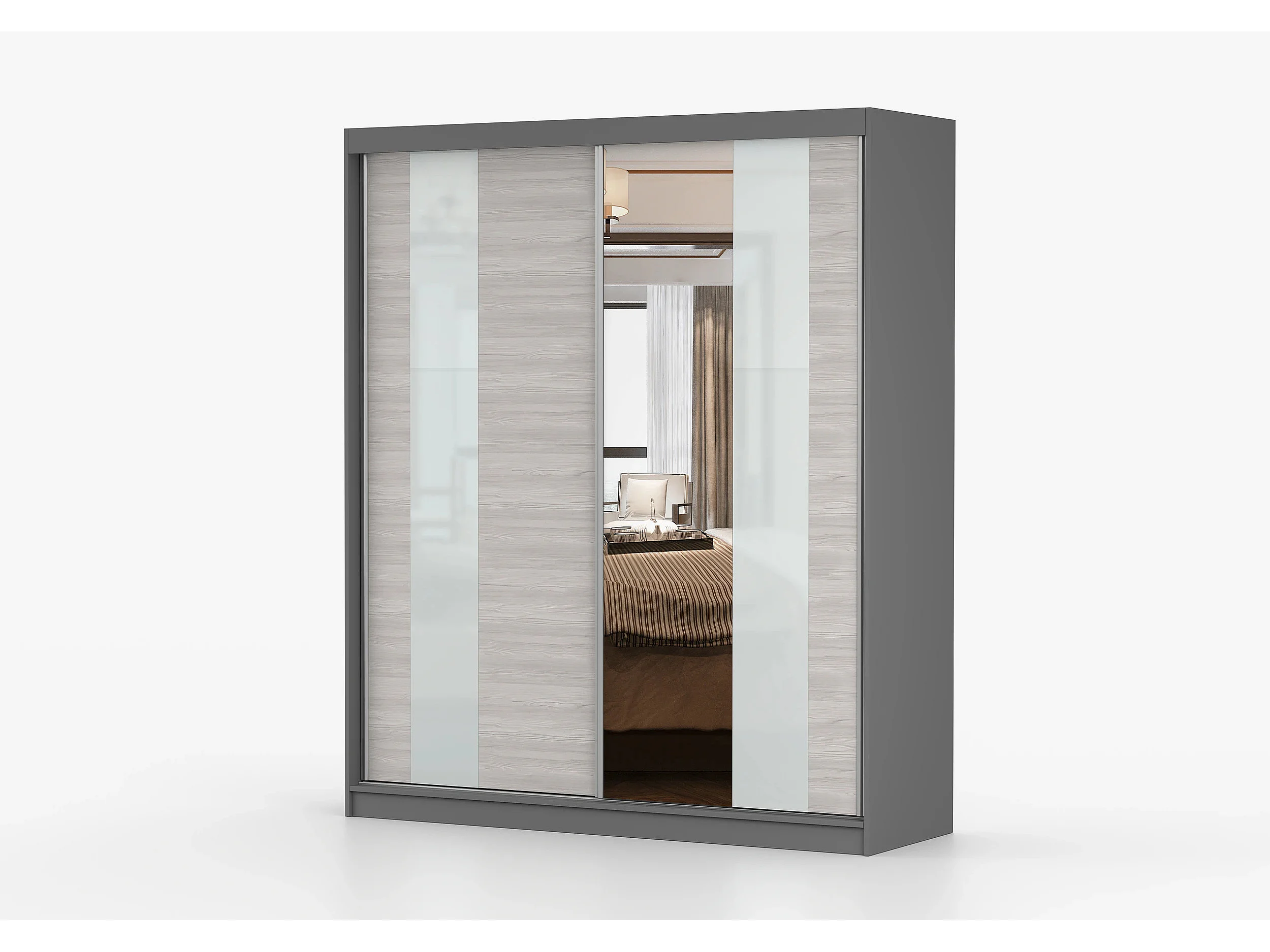 Armoire Lyra 183 cm avec miroir - Gris - Kathult
