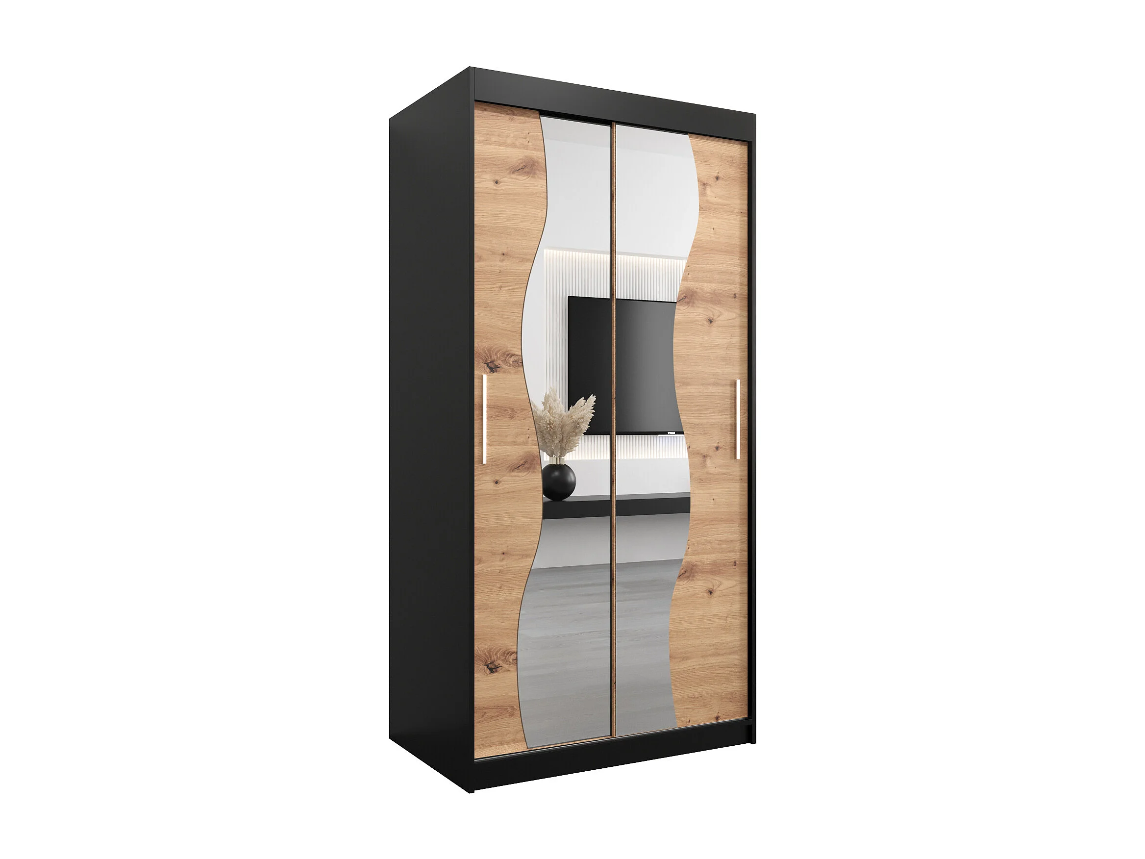 ARMOIRE MADRYT À PORTES COULISSANTES 200/100/62 2 Portes (Noir/Artisan)