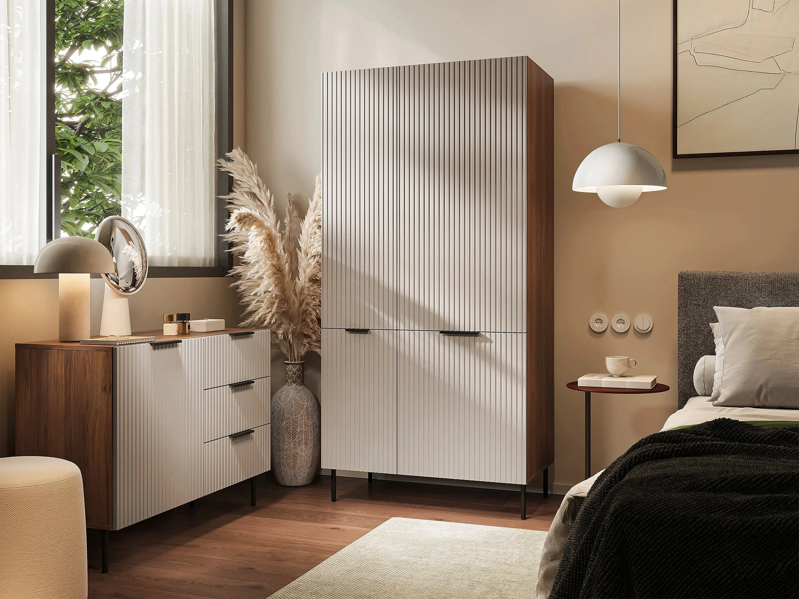 Armoire Mardalu 104, Cachemire|Noyer, 186x90x52cm, Portes d'armoire: Avec des charnières