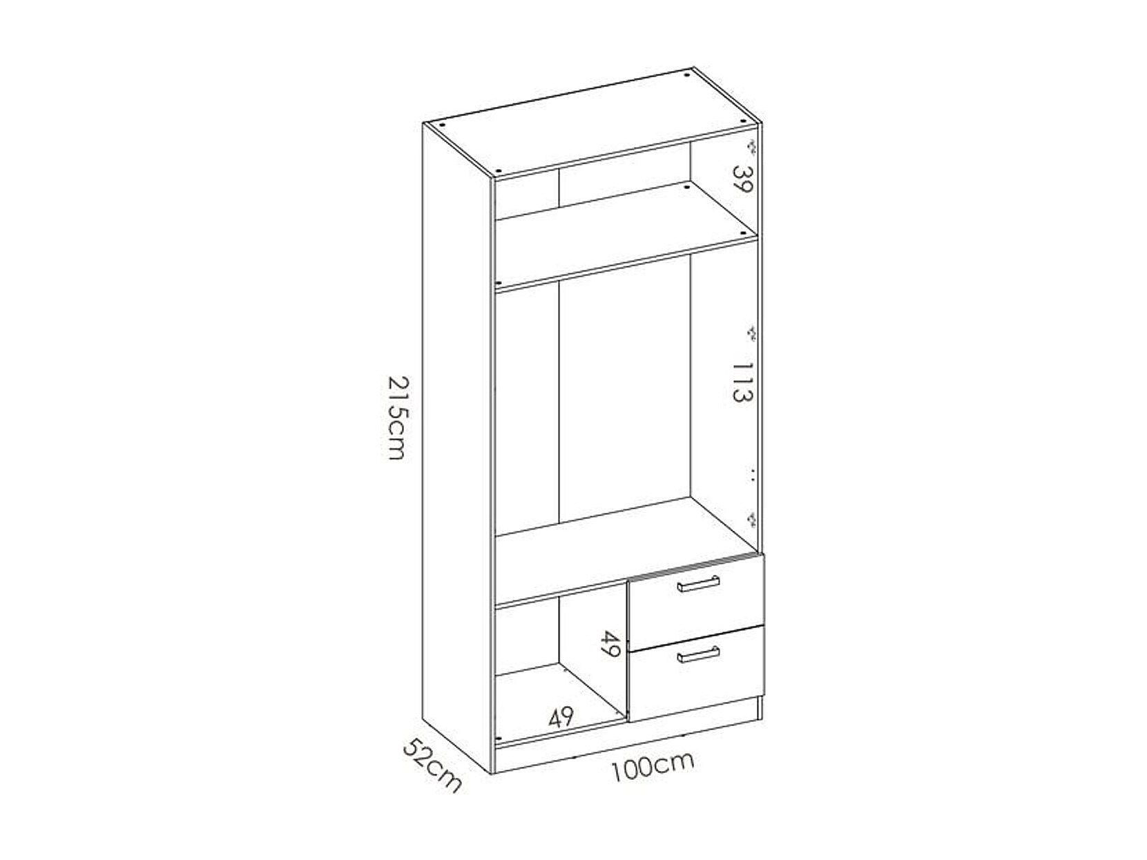 Armoire en panneaux de particules - Décor chene - 2 portes + 2 tiroirs - Style Essentiel - Chambre - L 100 x P 52 x H 215 cm