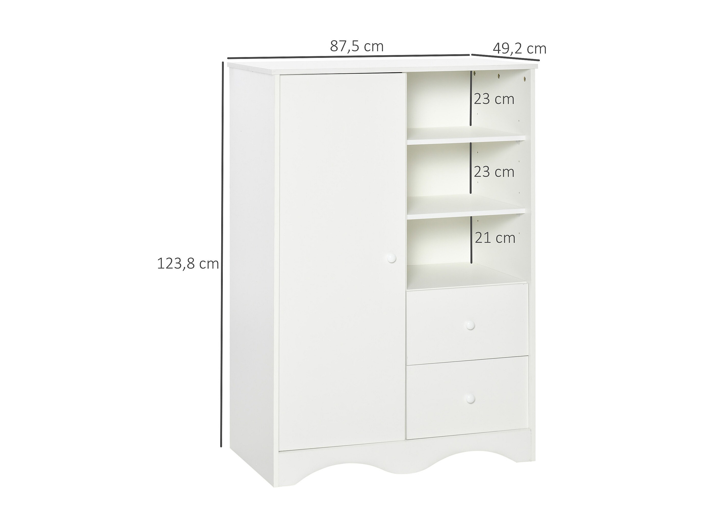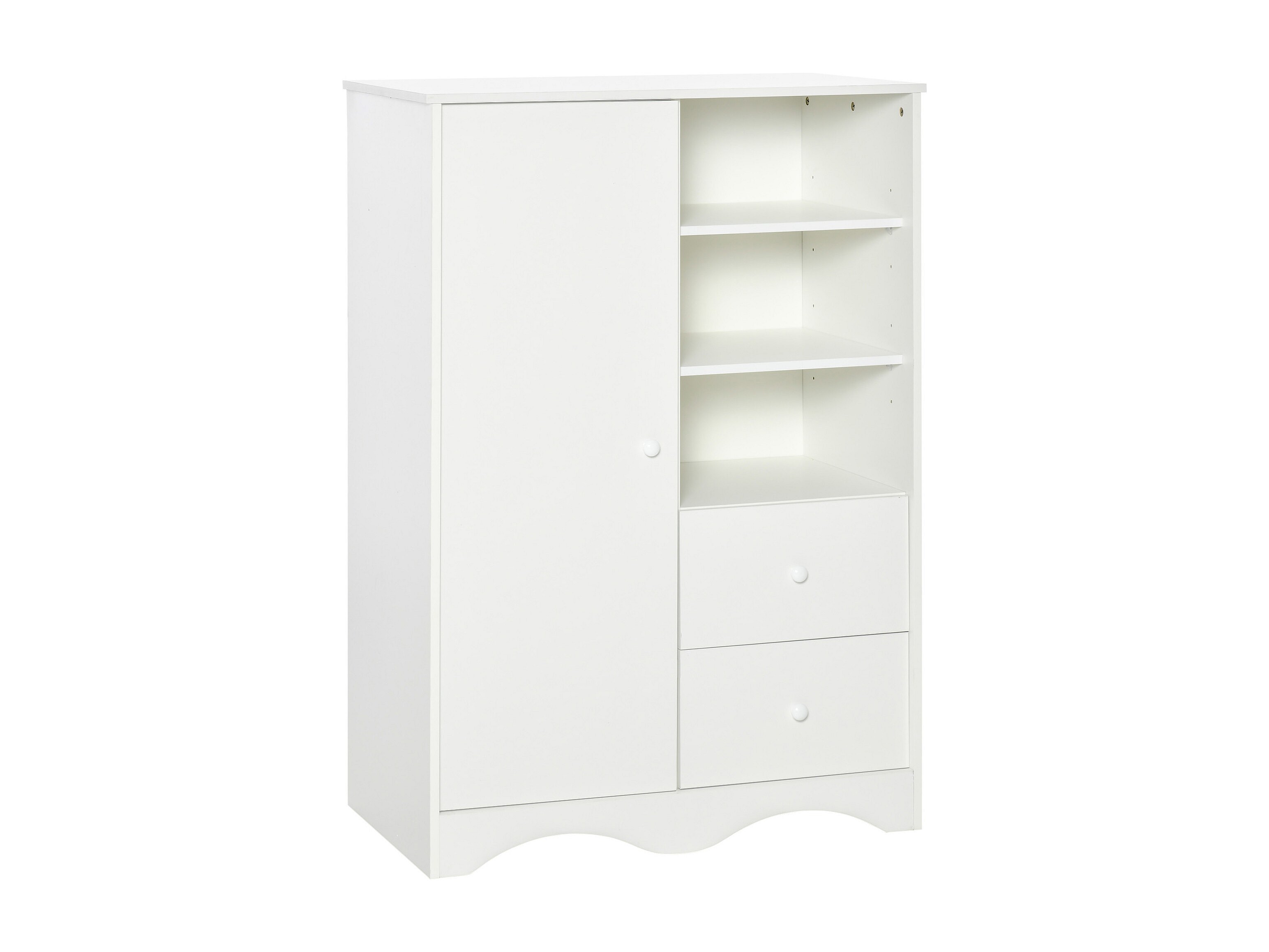Armoire - meuble multi-rangements - placard porte 5 étagères, 3 niches, 2 tiroirs - panneaux de particules blanc